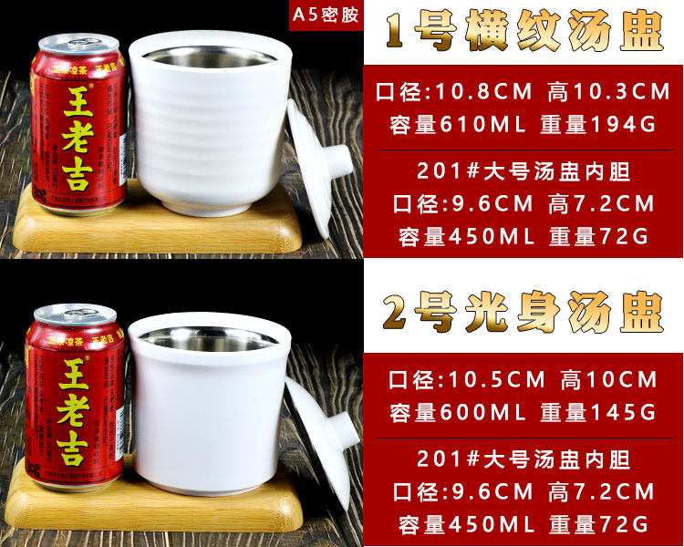 | Color | No. 1 soup cup with inner pot ✓,No. 2 soup cup with inner pot ✓,No. 3 soup cup with inner pot ✓,No. 4 small soup cup without liner ✓,No. 5 small soup cup with inner pot ✓,No. 6 small soup cup with inner pot ✓,No. 7 soup cup with inner pot ✓,No. 8 large rice bowl with inner pot ✓,No. 9 large rice bowl with inner pot ✓,No. 10 small rice bowl with inner pot ✓,No. 11 steamed vegetable cup with inner pot ✓,No. 12 double-eared soup cup without liner ✓,Wooden barrel rice bowl with inner pot ✓,Twill soup cup with liner ✓,Soup cup inner lid diameter 10cm ✓,Rice cup inner pot cover diameter 14.7cm ✓,201 soup cup liner small size 201 soup cup liner small size ✓,201 stainless steel soup cup liner - medium size ✓,201 soup cup inner pot large size ✓,201 rice cup inner pot small size ✓,201 rice bowl liner large size ✓,Autumn grass small soup cup + inner pot ✓,Autumn grass large soup bowl + inner pot ✓,Autumn grass small rice bowl + inner pot ✓,White autumn grass large rice bowl + inner pot ✓,Gray qinghe small soup bowl + inner pot ✓,Silver qinghe large soup bowl + inner pot ✓,Black qinghe small rice bowl + inner pot ✓,Lotus color green lotus rice bowl + inner pot ✓,Golden lucky bamboo soup bowl set ✓,Colorful lucky bamboo small rice bowl set ✓,Transparent lucky bamboo large rice bowl set ✓ |