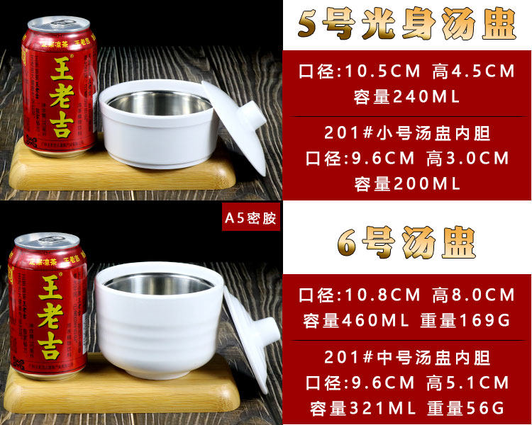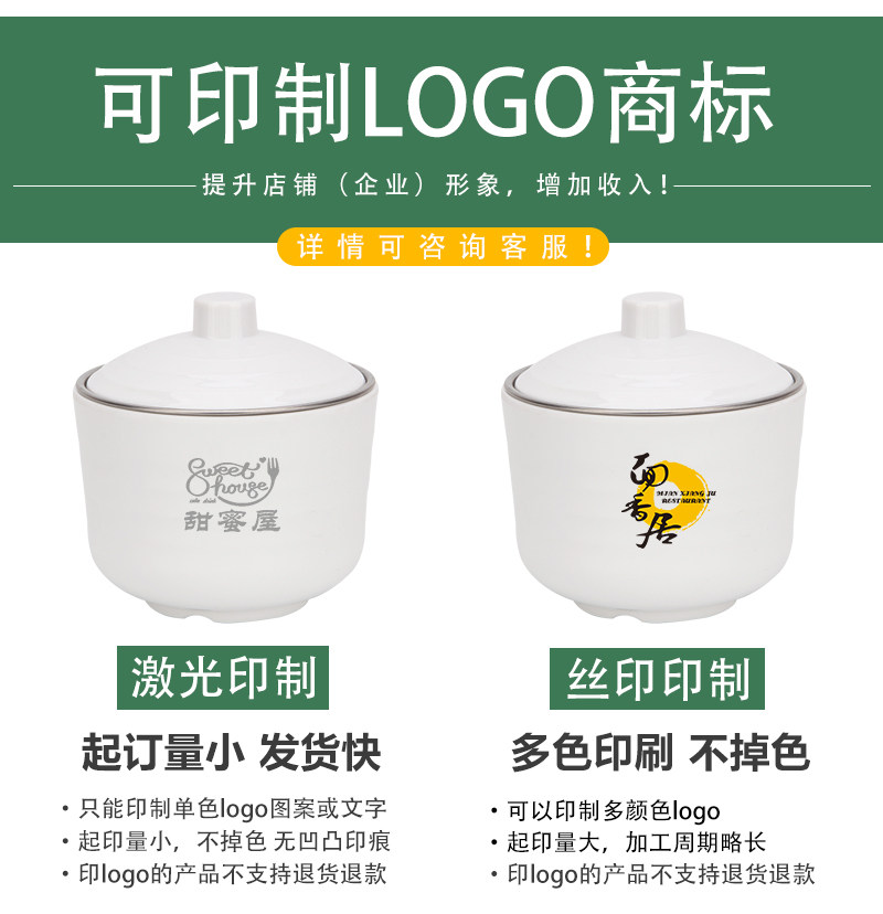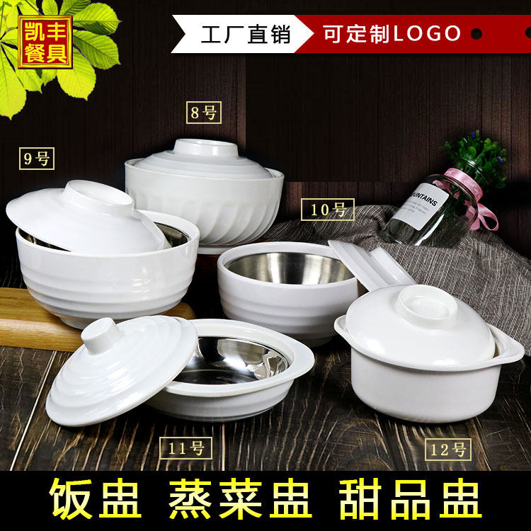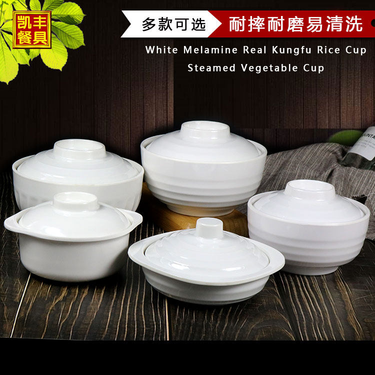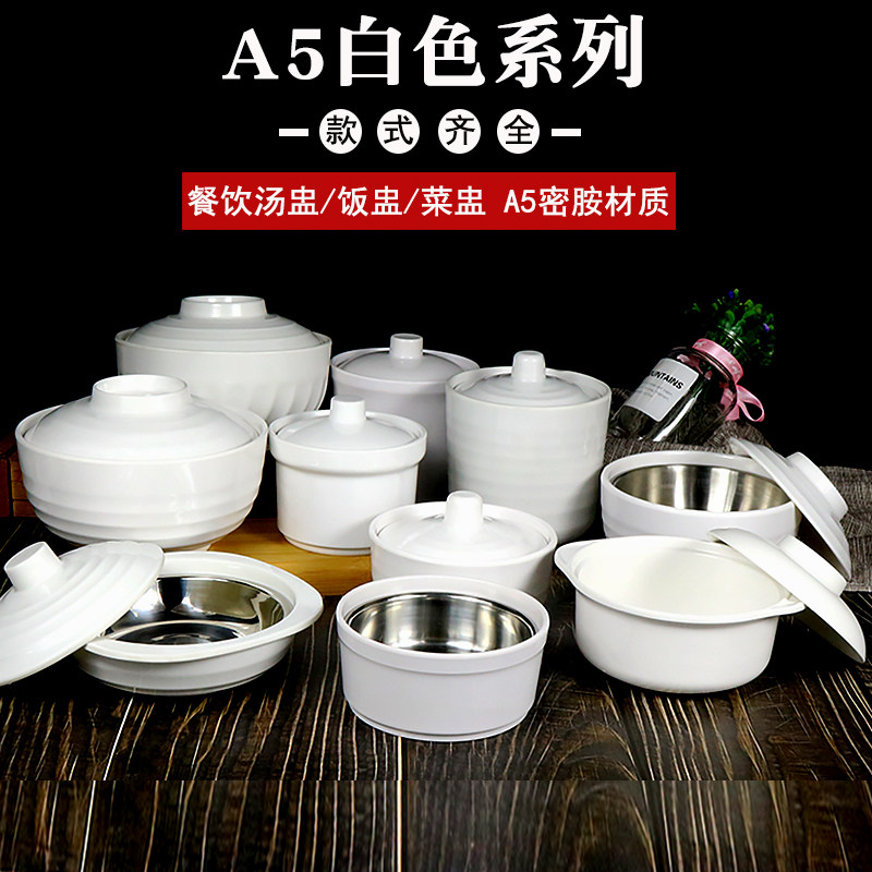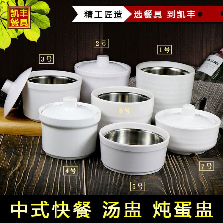 Fast Food White Melamine Stew Cup Soup Cup Steamed Egg Bowl Hotel Stainless Steel Liner Soup Bowl with Lid Commercial Ginger Tea