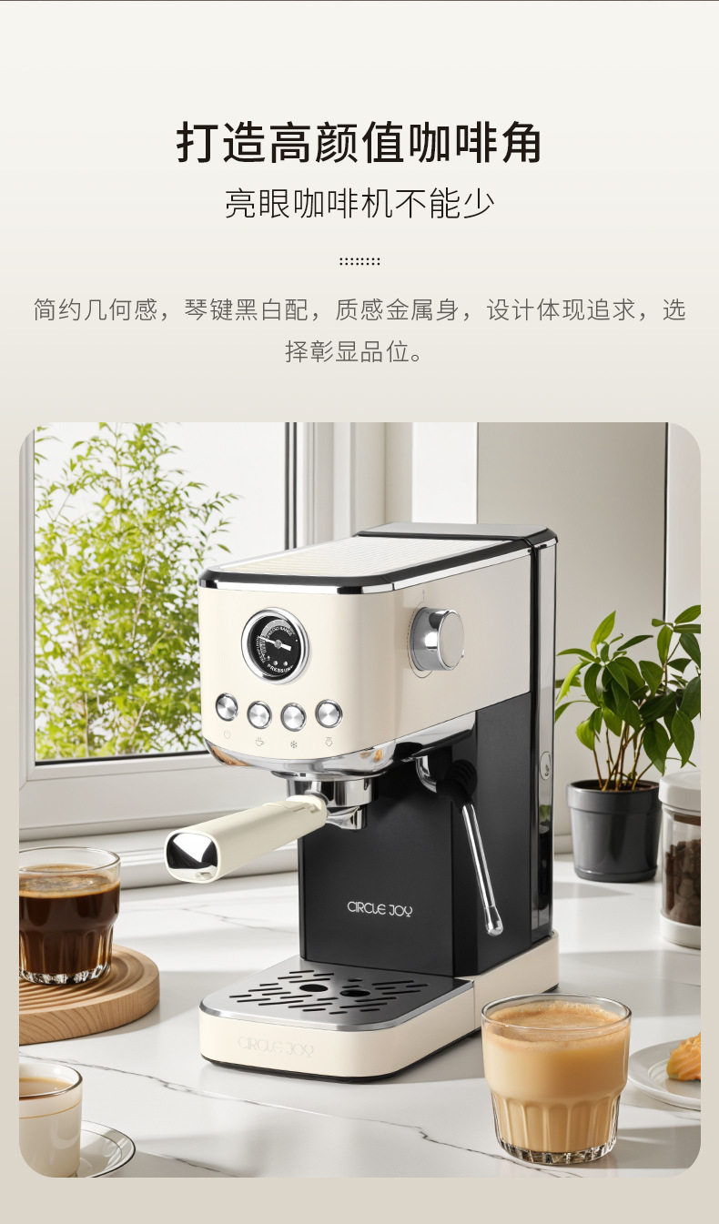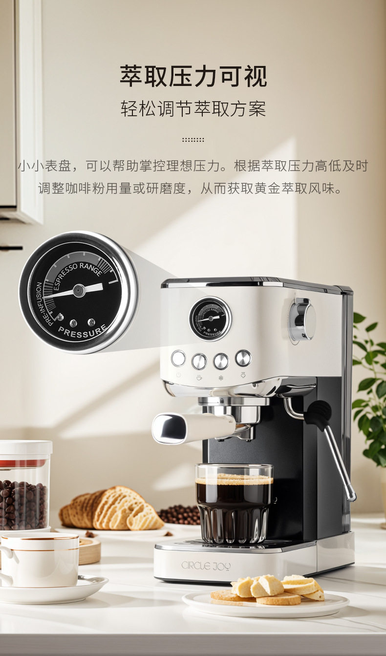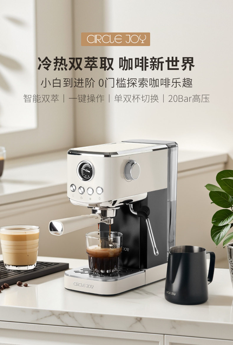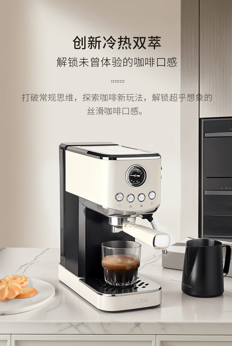 Circle Joy Hot and Cold Dual-Extract Semi-Automatic Coffee Machine for Home Use Italian Espresso Small All-In-One Commercial