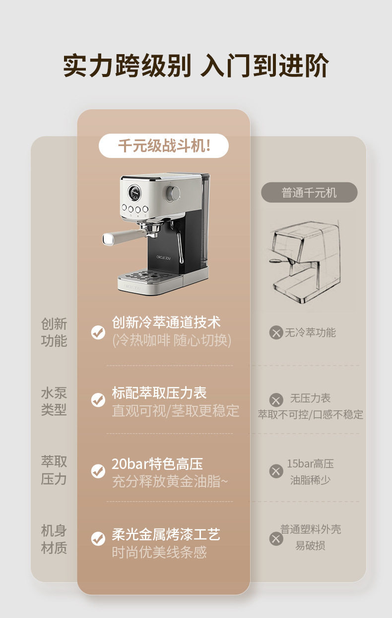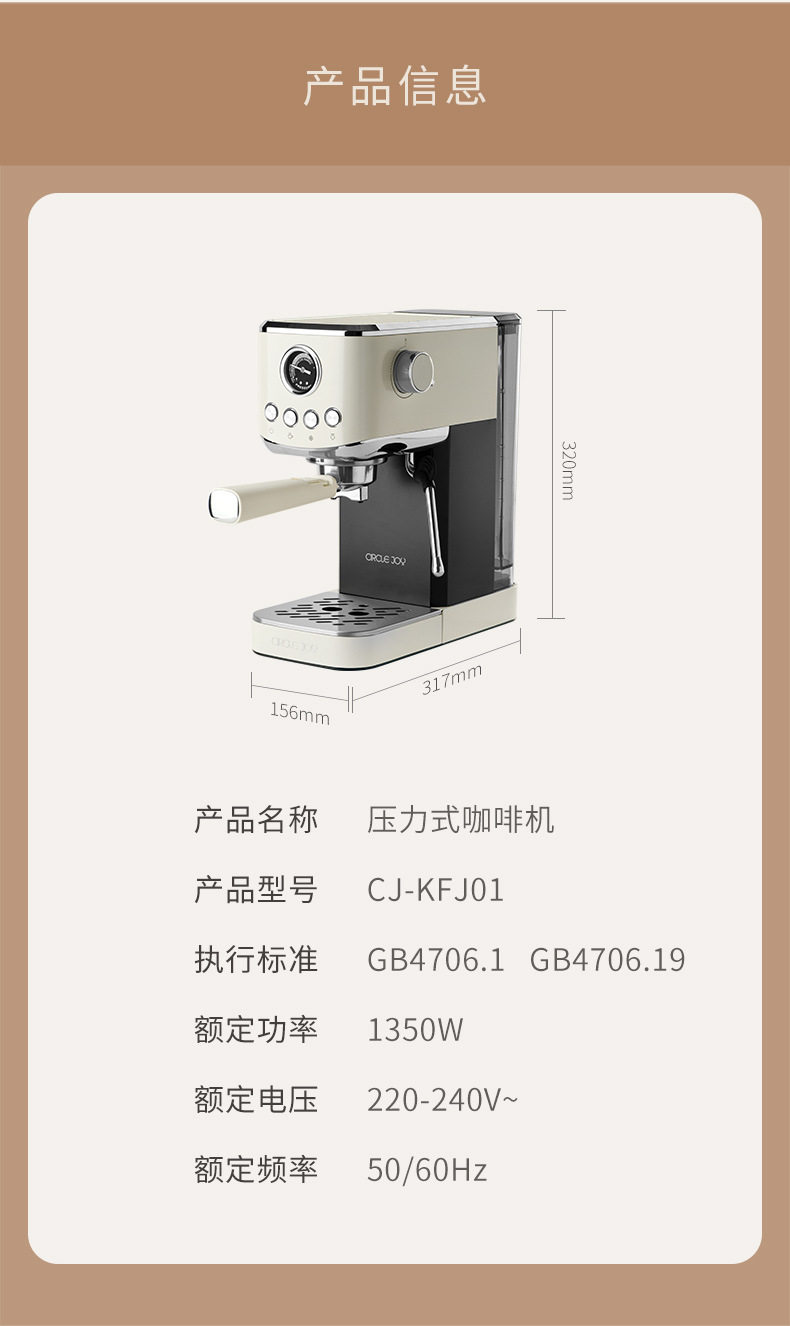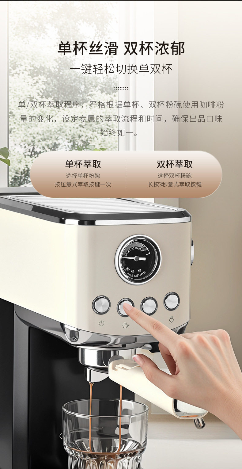 Circle Joy Hot and Cold Dual-Extract Semi-Automatic Coffee Machine for Home Use Italian Espresso Small All-In-One Commercial