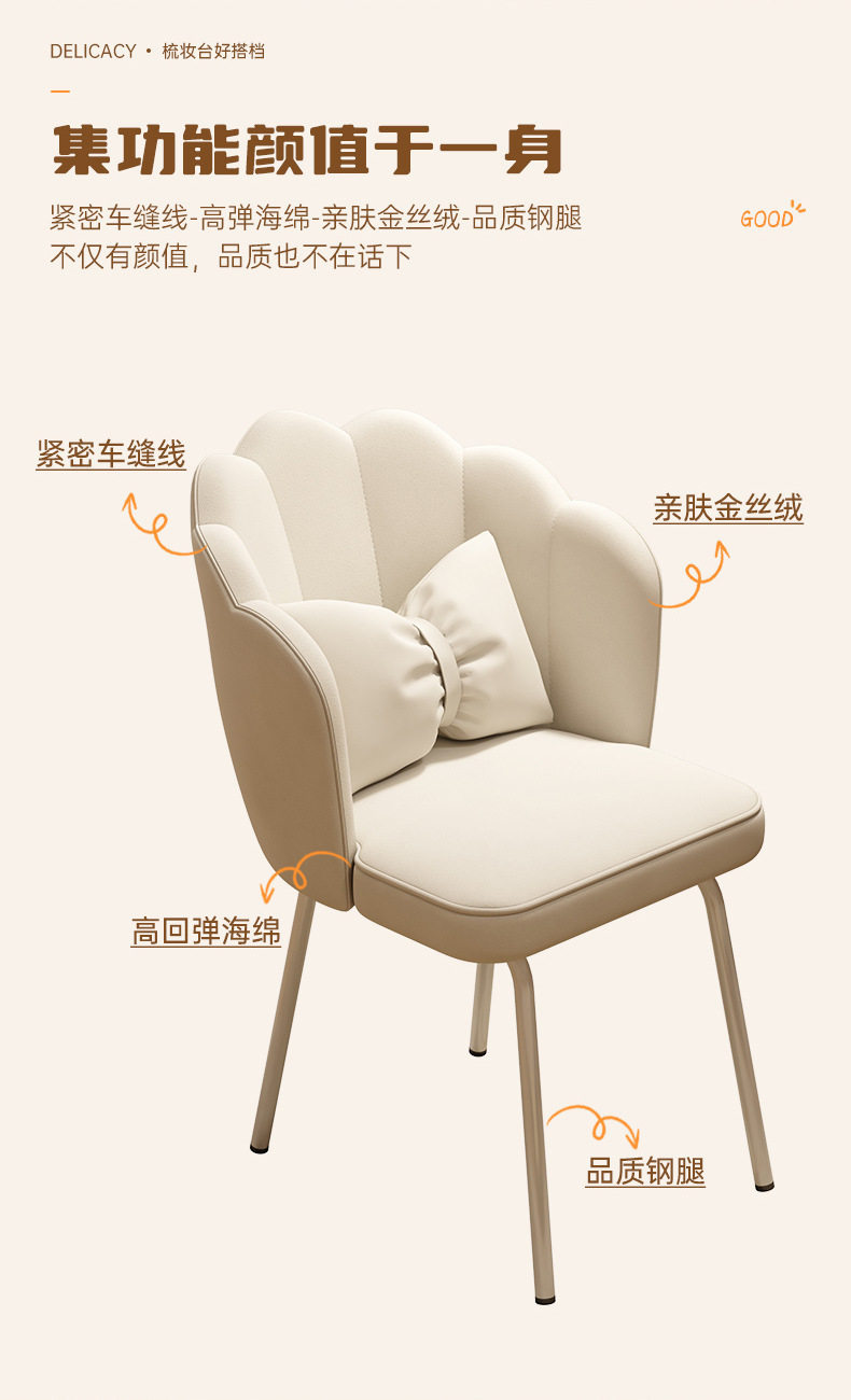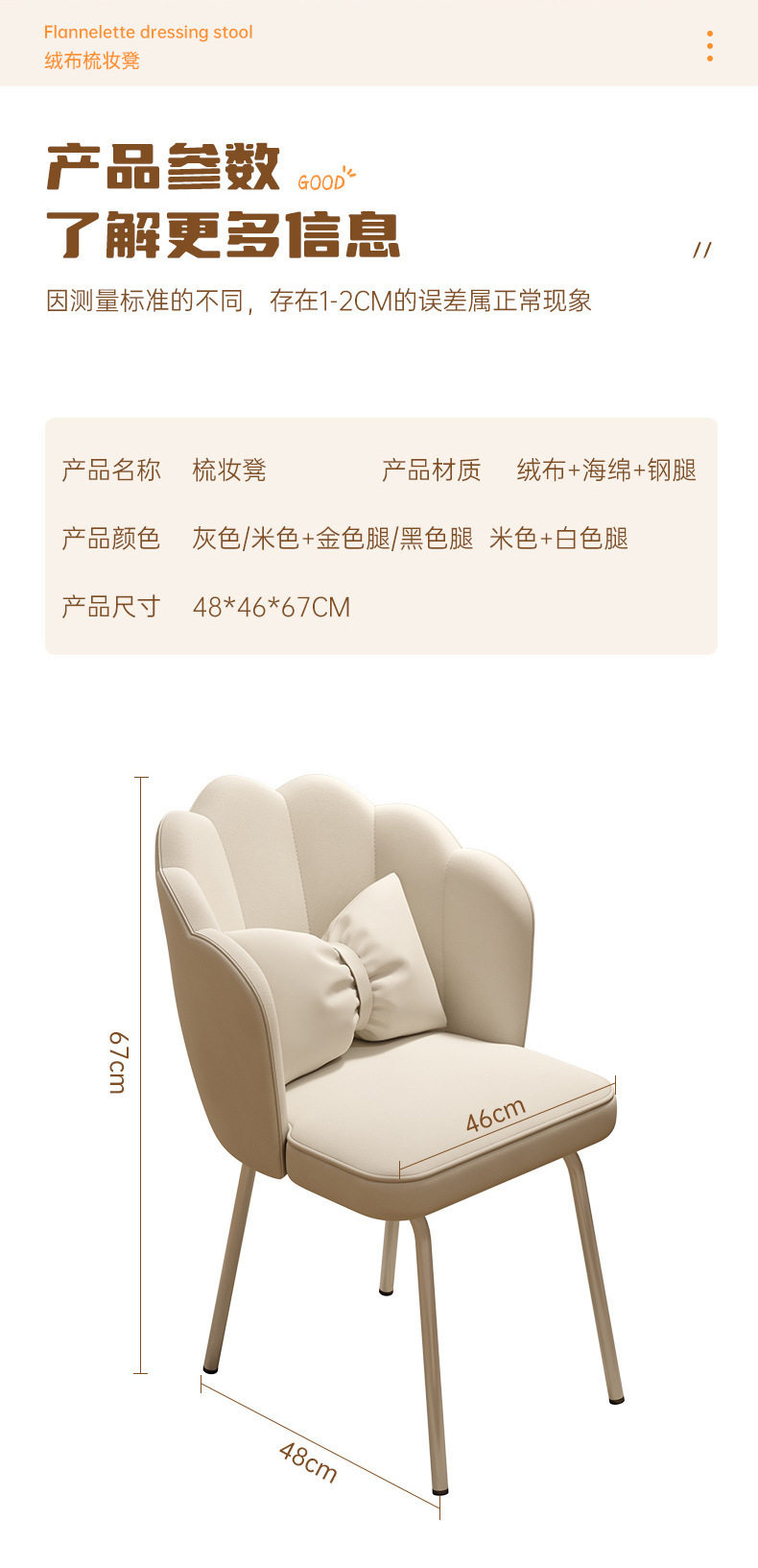 High-End Dressing Stool, Bedroom Makeup Stool, Light Luxury Desk Chair, Internet Celebrity Cream Style Manicure Stool, Small Apartment Dressing Chair