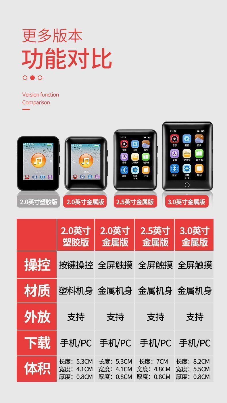 Student Version Touch Screen Mp4 Metal Full Screen Ultra-Thin Smart Mp3 Walkman Music Player Mp5 Bluetooth