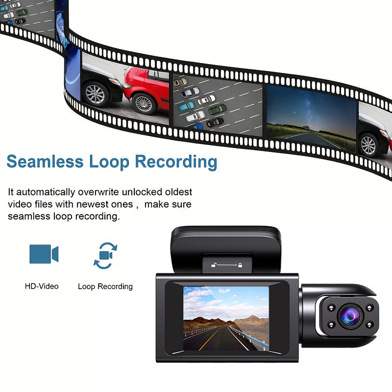 Stick-On Hidden Driving Recorder, Compact and Does Not Take up Space, Dual-Lens Loop Recording in Front of the Car and Inside the Car