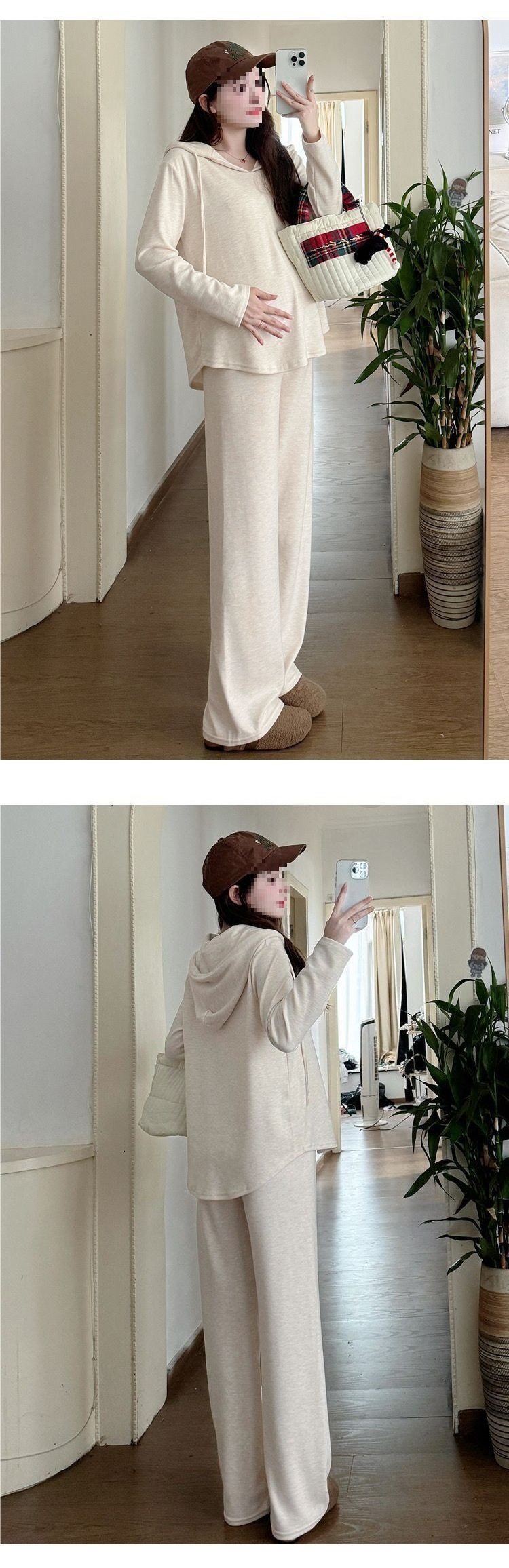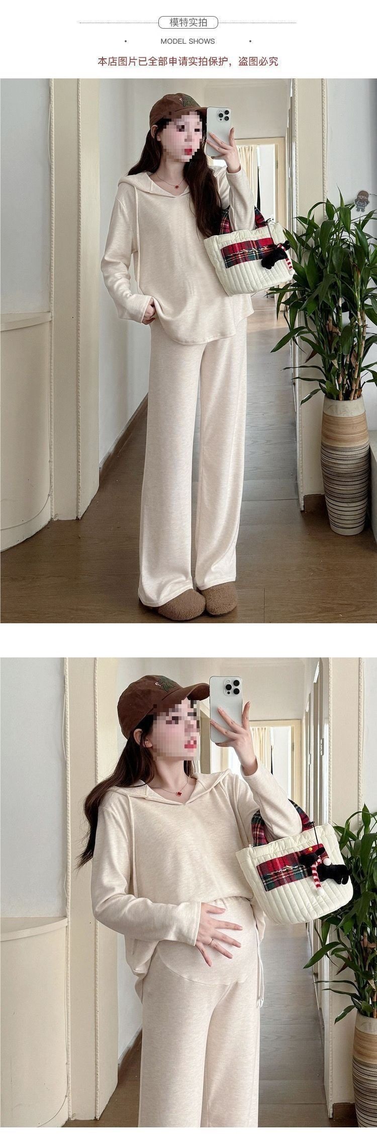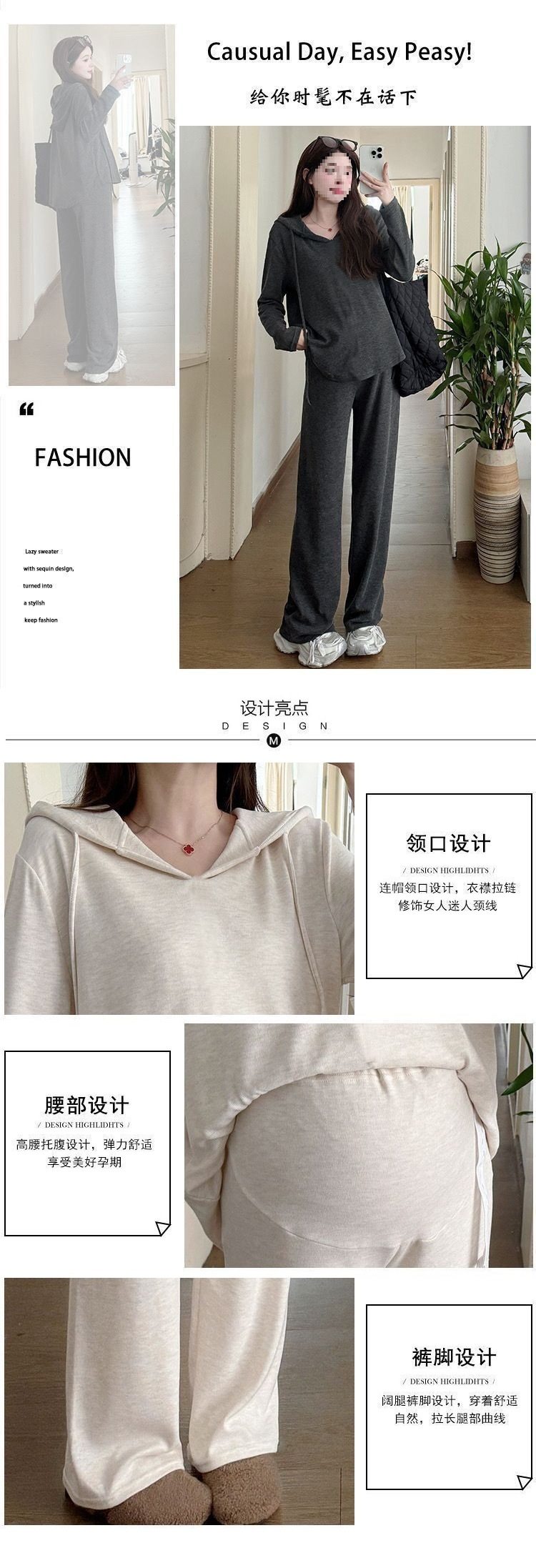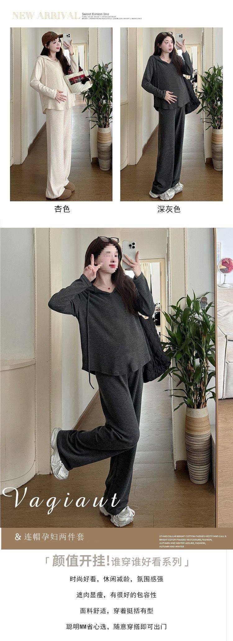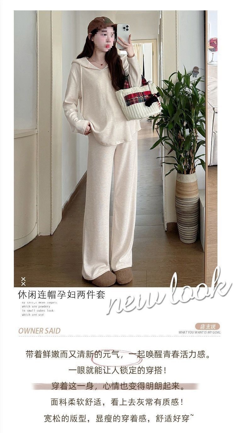 Maternity Wear, Spring & Fall Loose Long-Sleeved Hooded Tops, Korean Style Fashionable Casual Outer Wear Belly Support Pants, a Complete Set for Hot Moms
