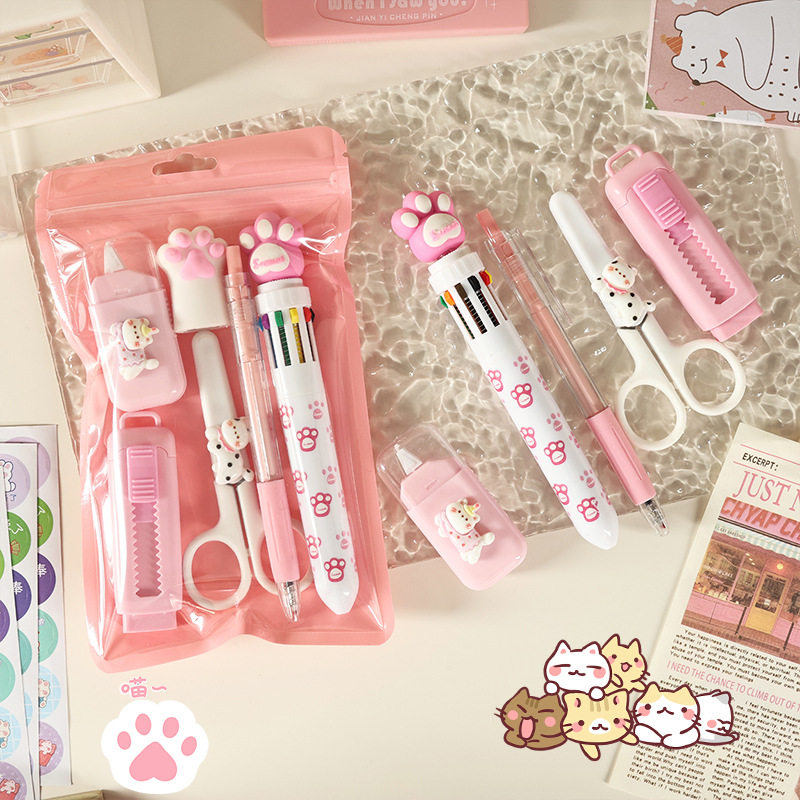 Cross-Border Student Cat Stationery Supplies, High-Looking Ins Style, Simple and Cute, Large-Capacity Practical Set, Souvenir