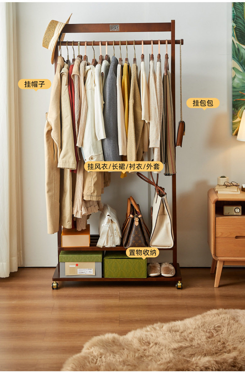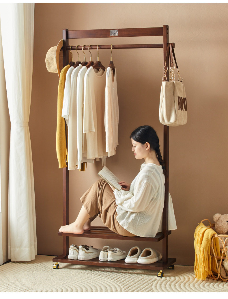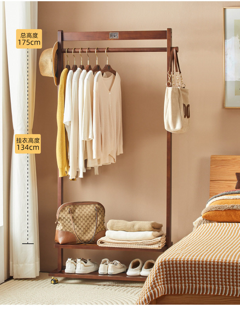 Solid Wood Floor-Standing Coat Rack, Removable Underwear Box, Shoe Box Storage Rack, Entrance Hall, Bedroom Vertical Clothes Rack