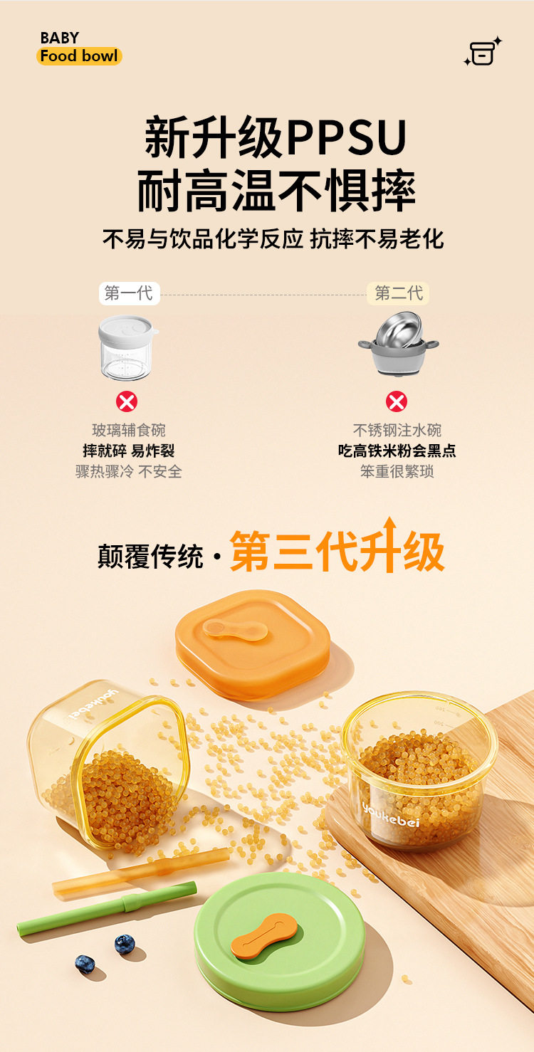 Ppsu+Silicone Baby Food Bowl 0 Months + Suitable for 260ml Multi-Color High Temperature Resistant Maternal and Infant Feeding Tableware Wholesale