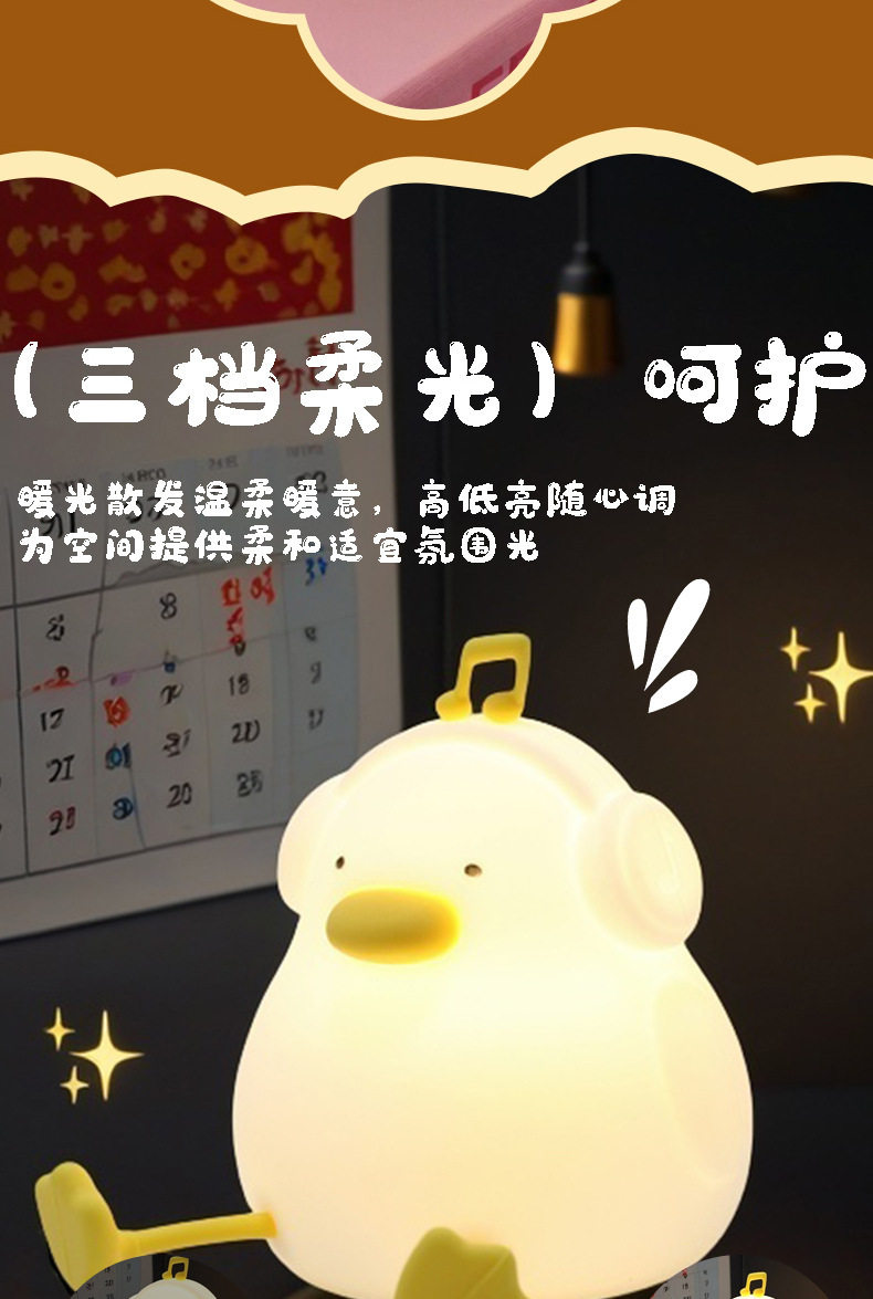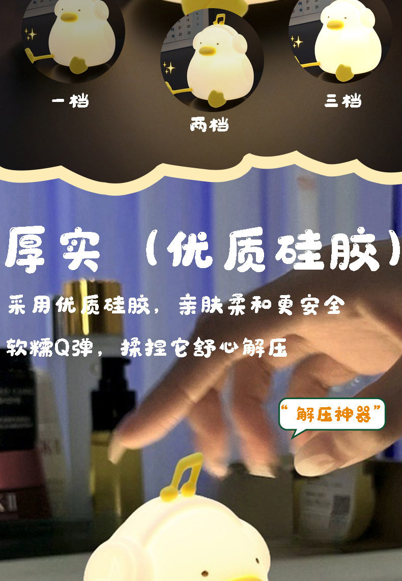 Cross-Border Popular Music Duck Night Light Silicone Pat Lamp Bedside Night Light Eye Protection Lamp Atmosphere Lamp Creative Table Lamp