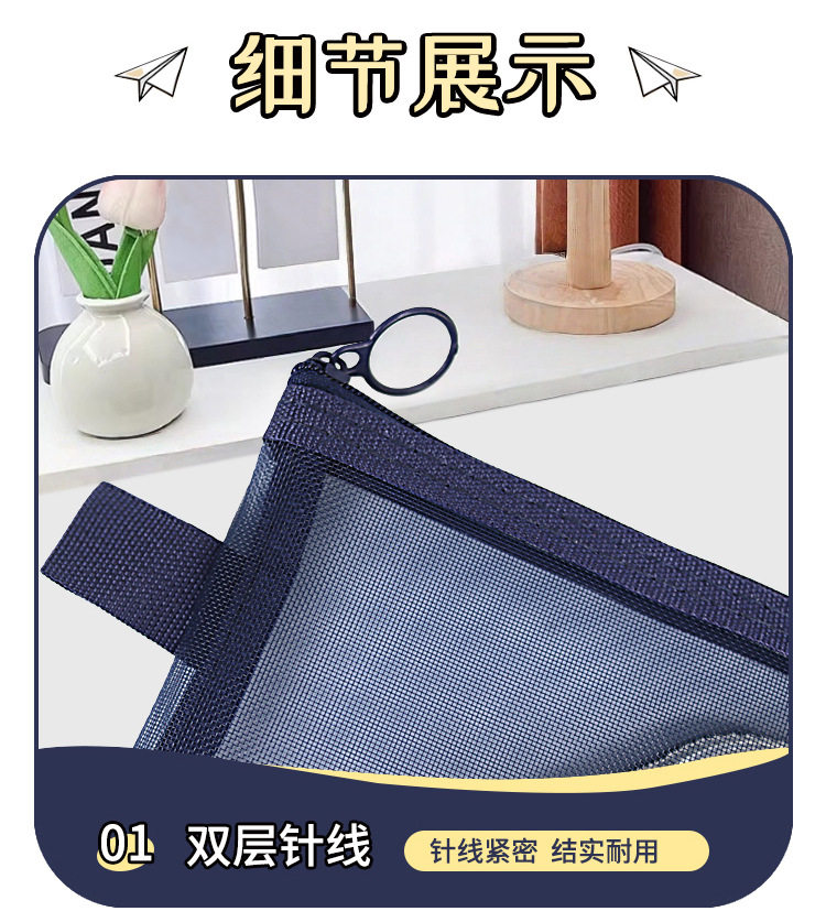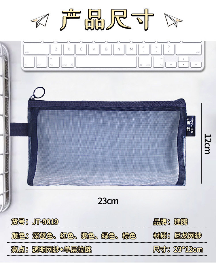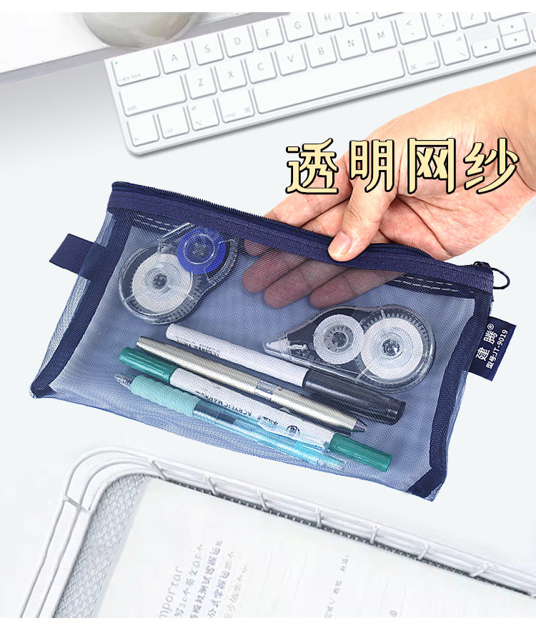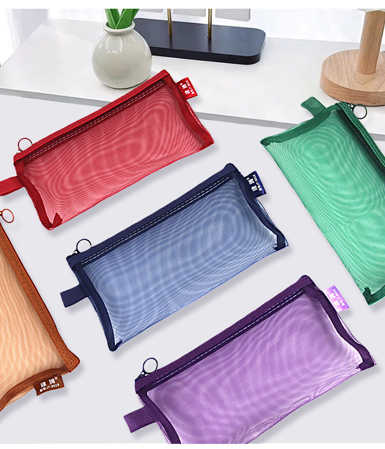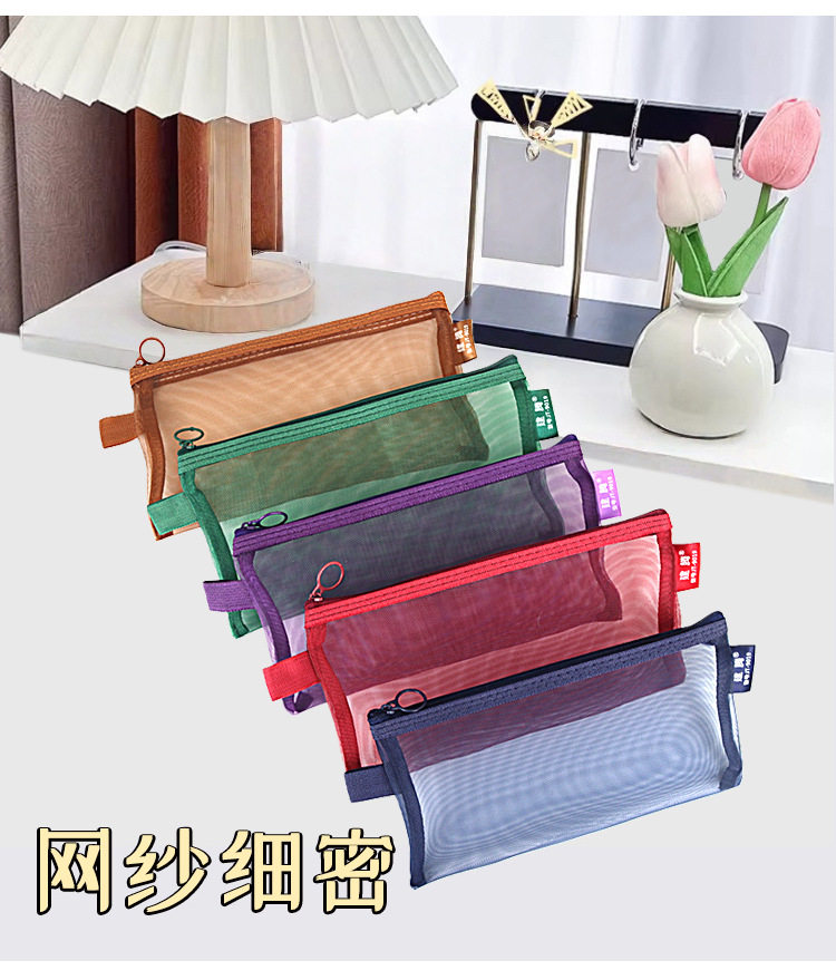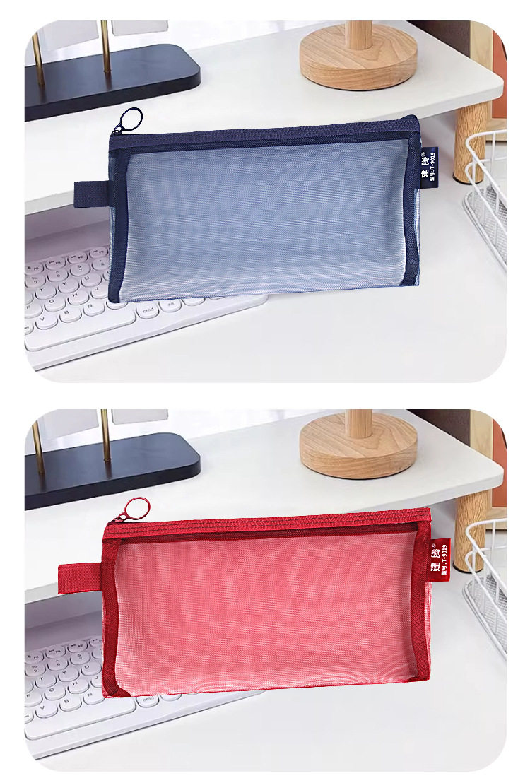 Retro Simple Nylon Mesh Large-Capacity Storage Bag Zipper File Bag Printed Logo Document Bag Coin Purse