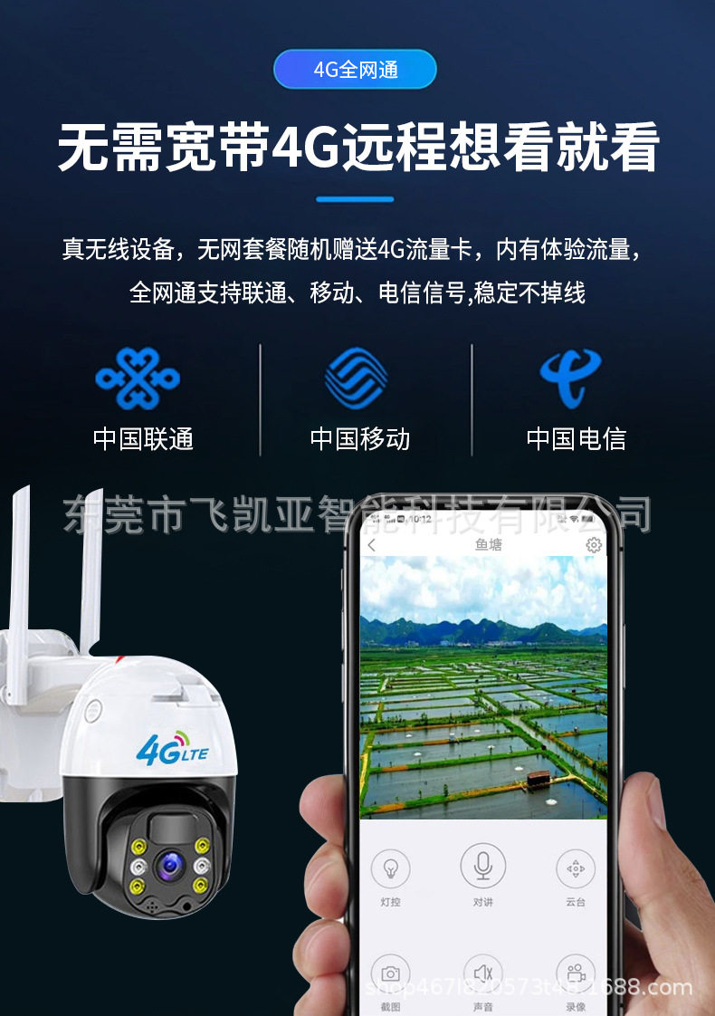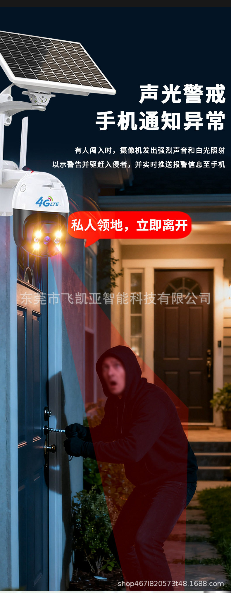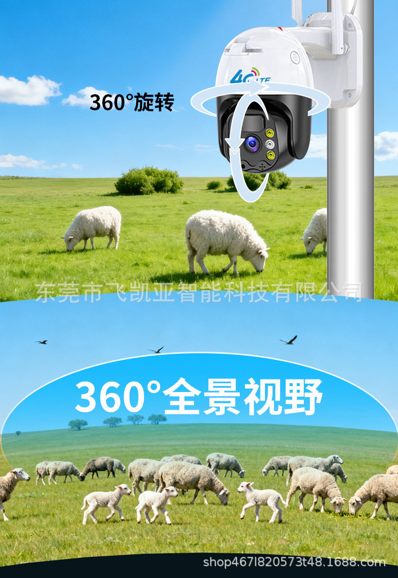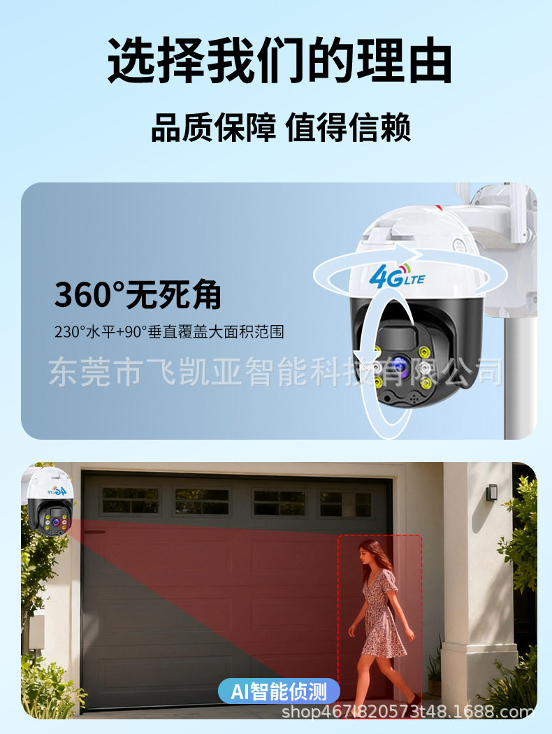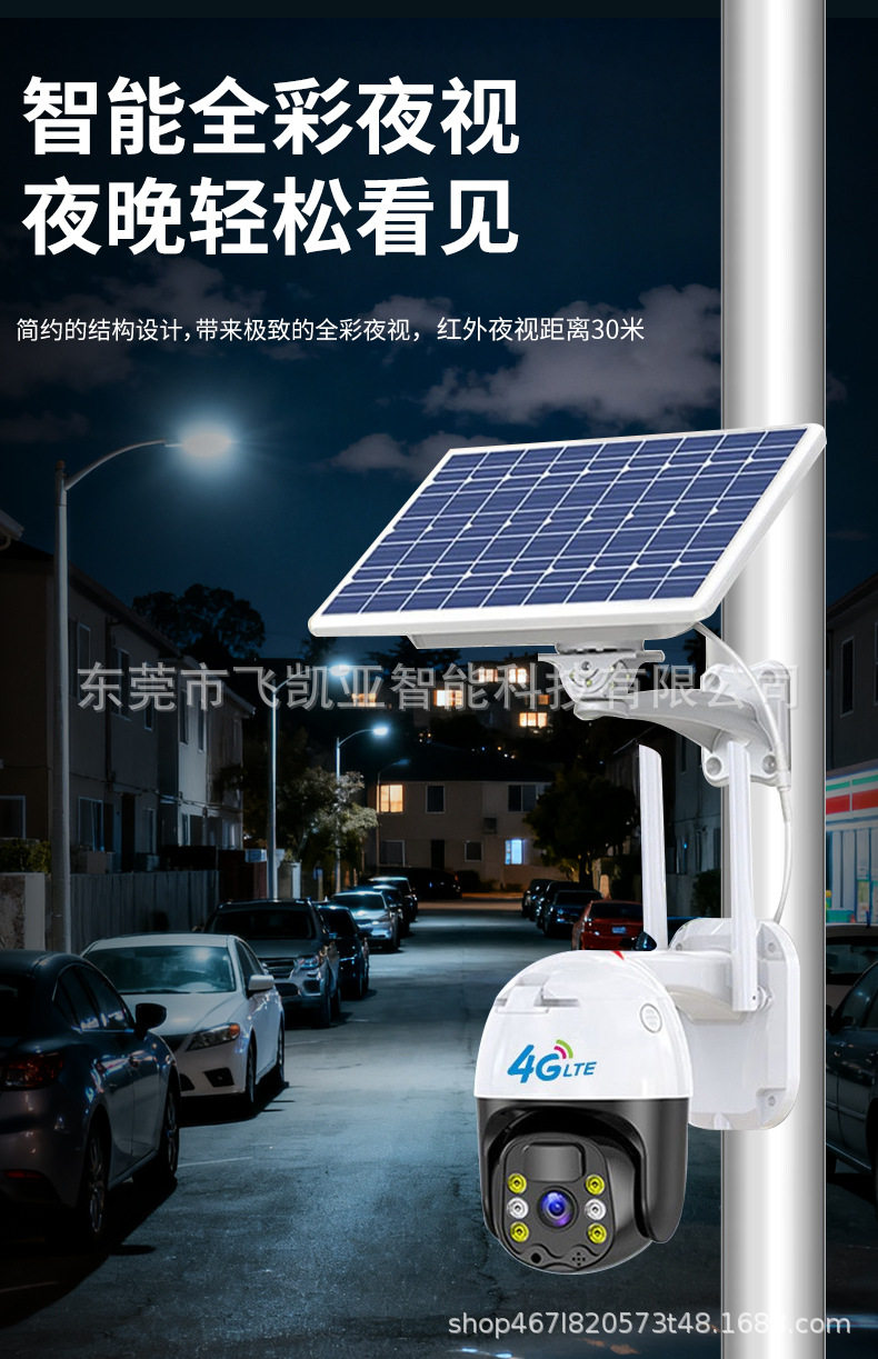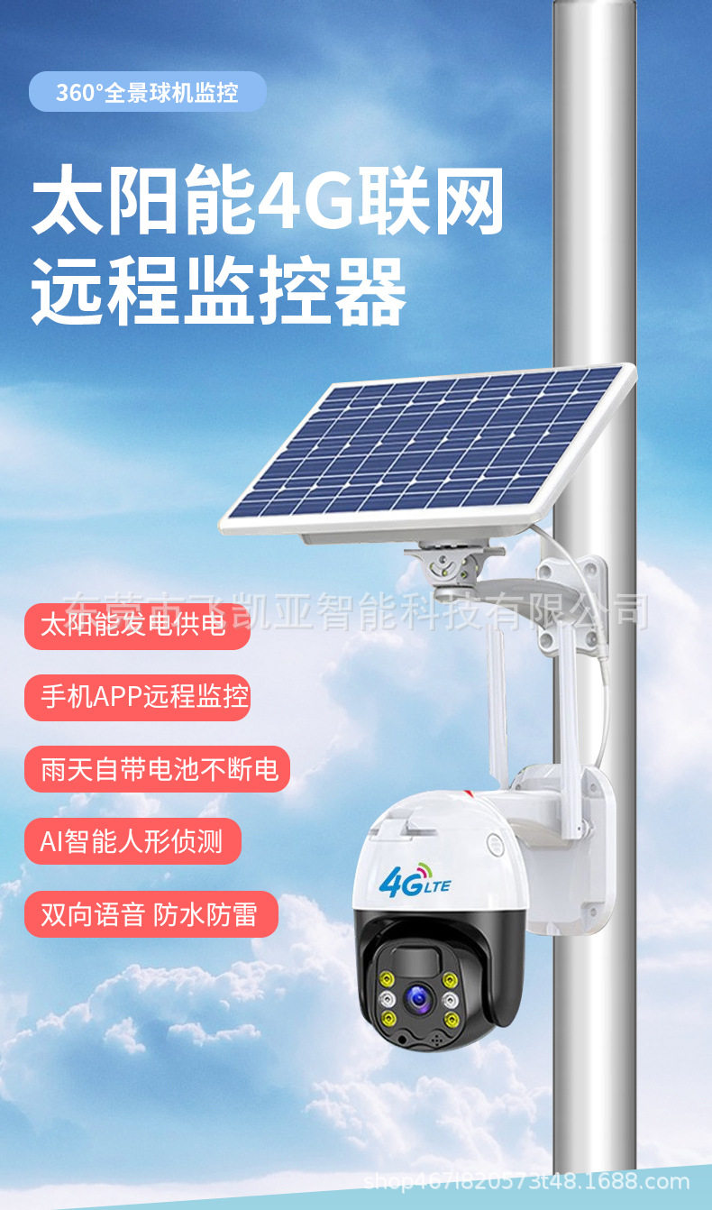 Feikaiya Low-Power 4g Solar Dome Monitor Outdoor Ultra-Clear Waterproof Night Vision Monitoring Wireless Camera