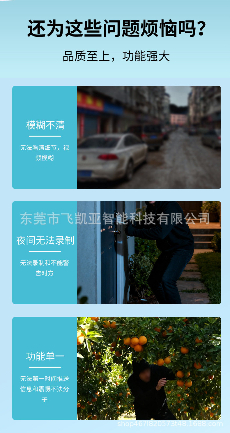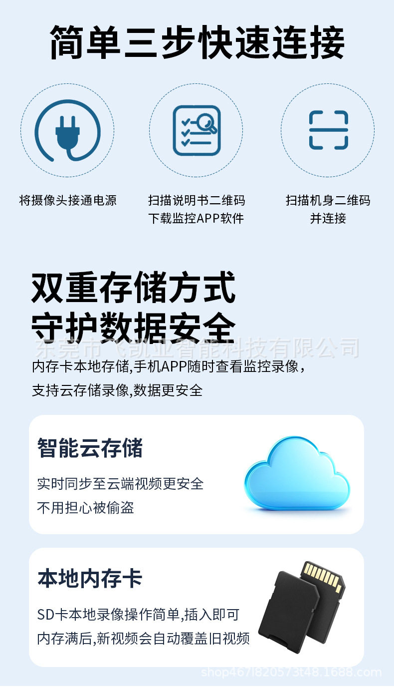 | Additional features | Macro,Night vision,Smart operating system,Anti-theft alert,Cloud storage,Mobile phone remote control,Night vision effect,Alarm detection,Alarm notification |
