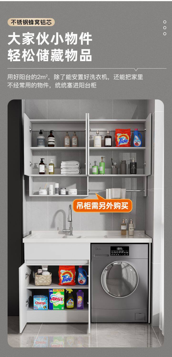 Honeycomb Aluminum Balcony Laundry Cabinet Companion Combination Drum Washing Machine Cabinet Integrated Laundry Sink with Washboard