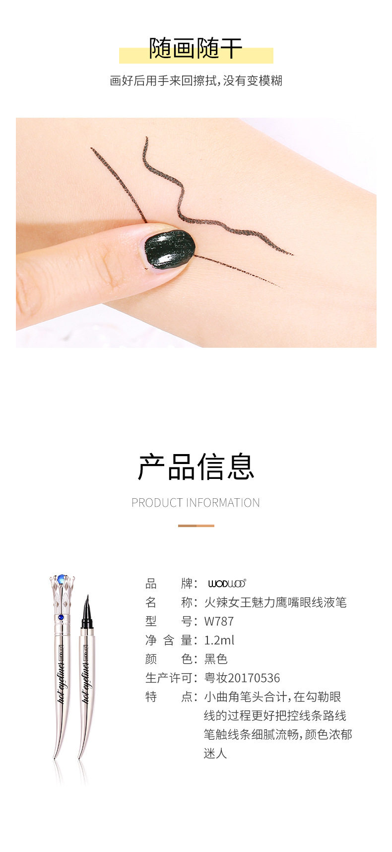 | Product name | Wodwod queen charm eagle beak non-smudged liquid eyeliner pen |