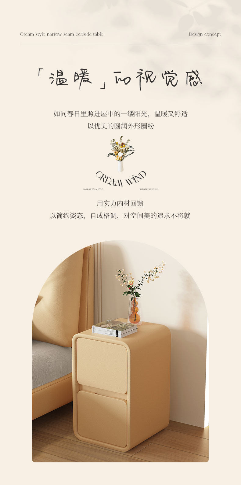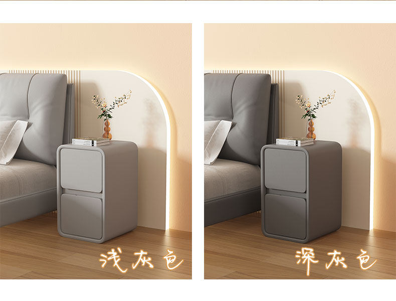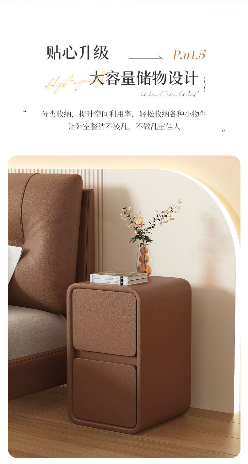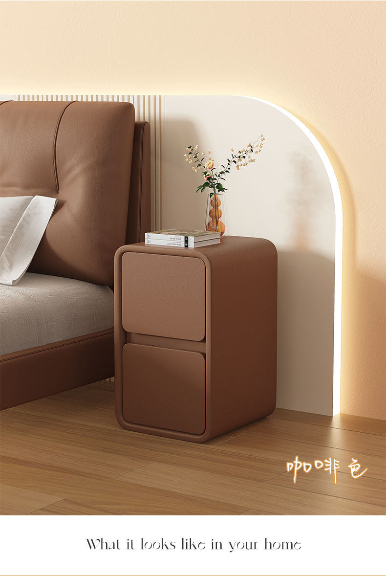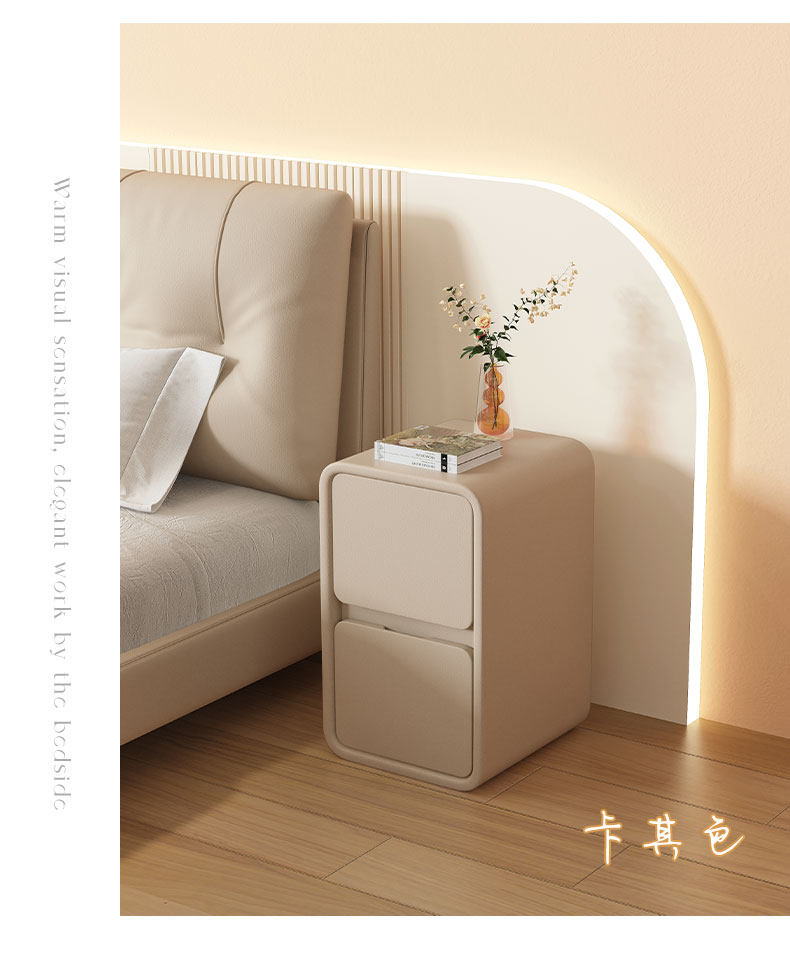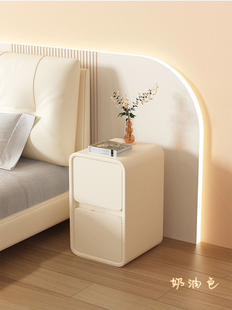 Cream Style Bedside Table Simple Modern Solid Wood Leather Bedside Table Small Ultra-Narrow 20cm Normcore Mini Storage Cabinet