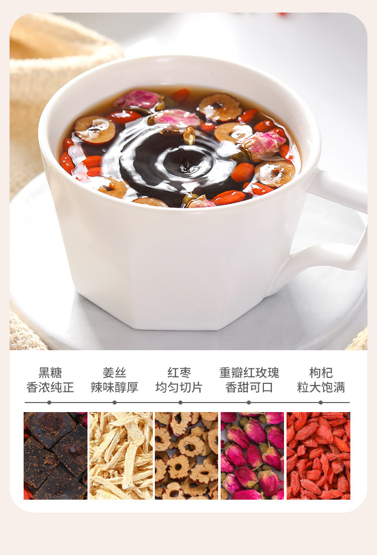 | Packaging specifications | Buy 1 box, get 1 box free brown sugar ginger date tea [20 packs] and get a cup,Brown sugar ginger tea 15g*10 bags/box |