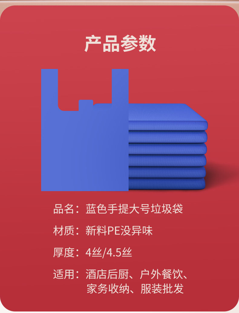 Large Blue Thickened Garbage Bags for Property Management, Commercial Use, Handheld Vest-Style, Household Kitchen Medium-Sized, Recyclable Plastic Ginger Tea