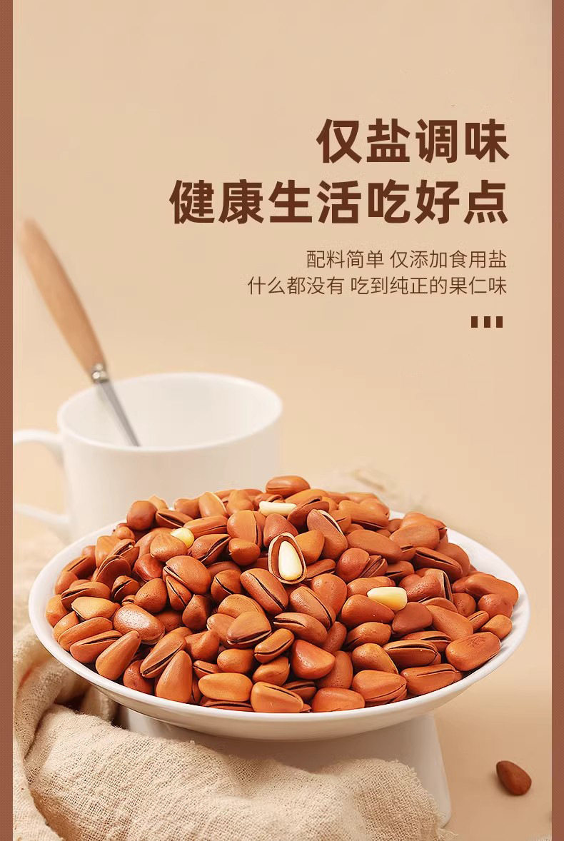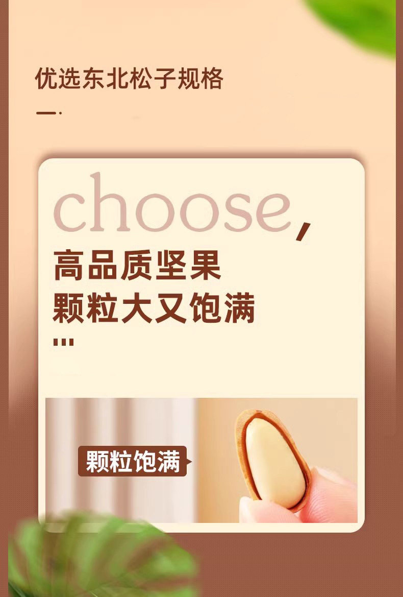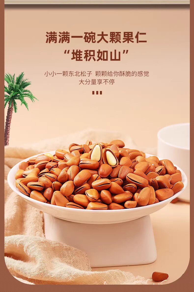 | Taste | [northeastern red pine nuts large particles] original pine nuts 500g*3 bags (0.5kg about 1150 pieces),[northeastern red pine nuts large particles] original pine nuts 500g*2 bags (0.5kg about 1150 pieces),[northeastern red pine nuts large particles] original pine nuts 500g*1 bag (0.5kg about 1150 pieces),【1.0kg extra large particles】original pine nuts 250gx4 bags (0.5kg about 950 pieces),【0.5kg extra large particles】original pine nuts 250gx2 bags (0.5kg about 950 pieces),[half a pound of extra large particles] original pine nuts 250gx1 bag (0.5kg about 950 pieces),[half a pound of large particles] original pine nuts 250gx1 bag (0.5kg about 1150 pieces) |