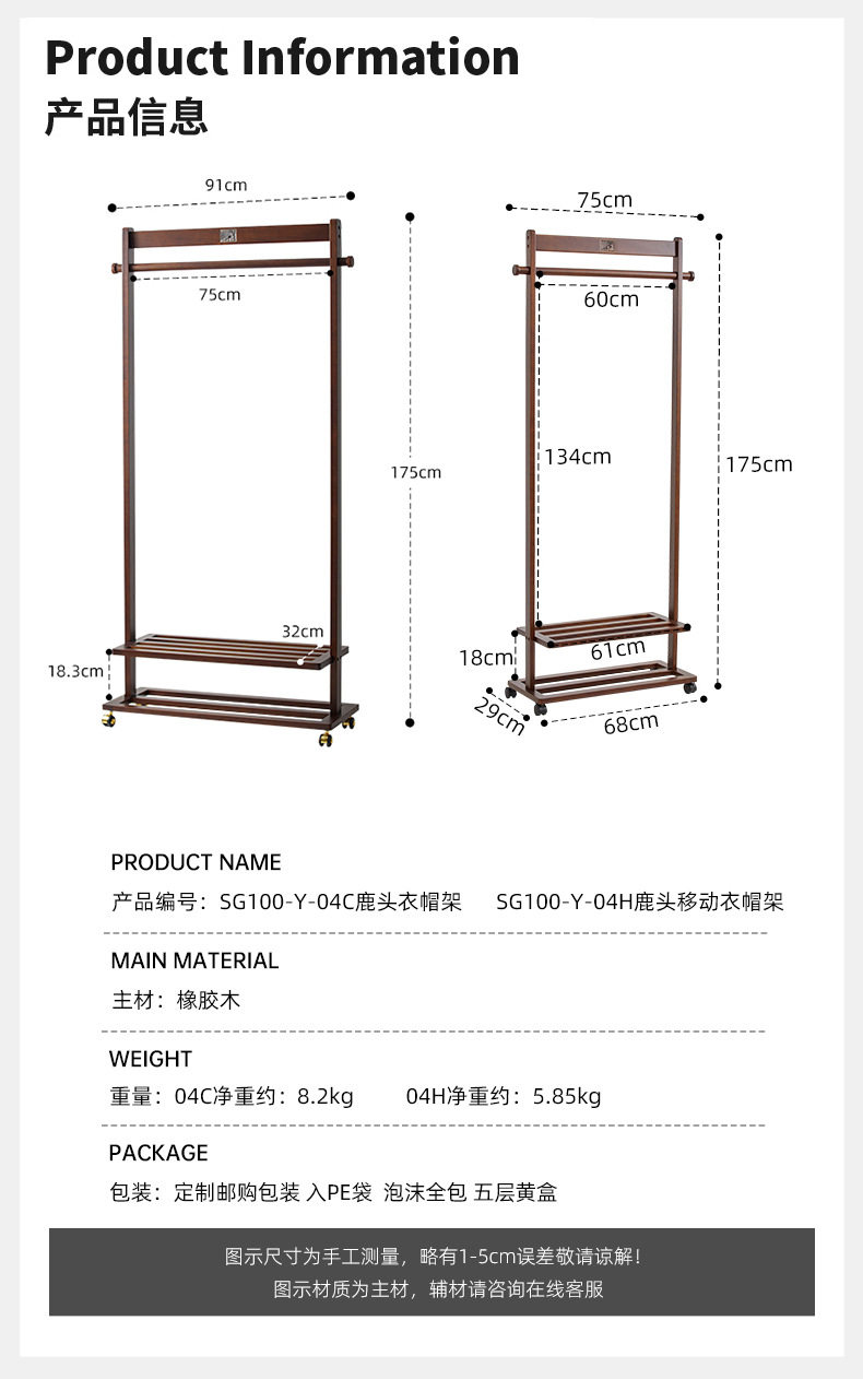 Color Removable embossed deer solid wood coat rack-small size,Removable embossed deer solid wood coat rack-large size