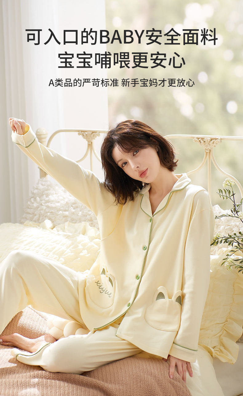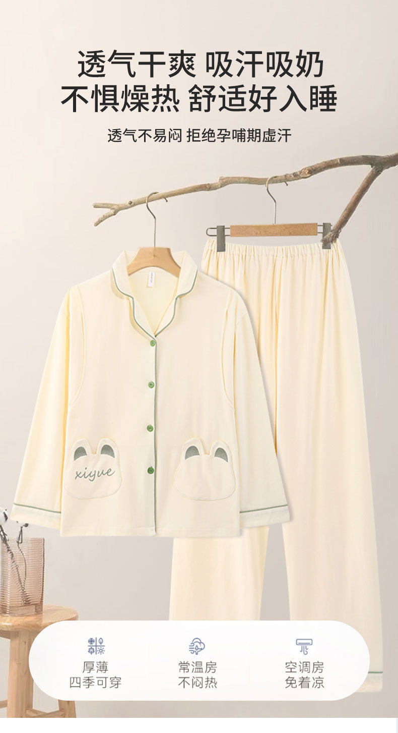 2025 Autumn New Cross-Border Popular Cool Cotton Stretch 200g Maternity Homewear Set for Pregnant Women and Mothers