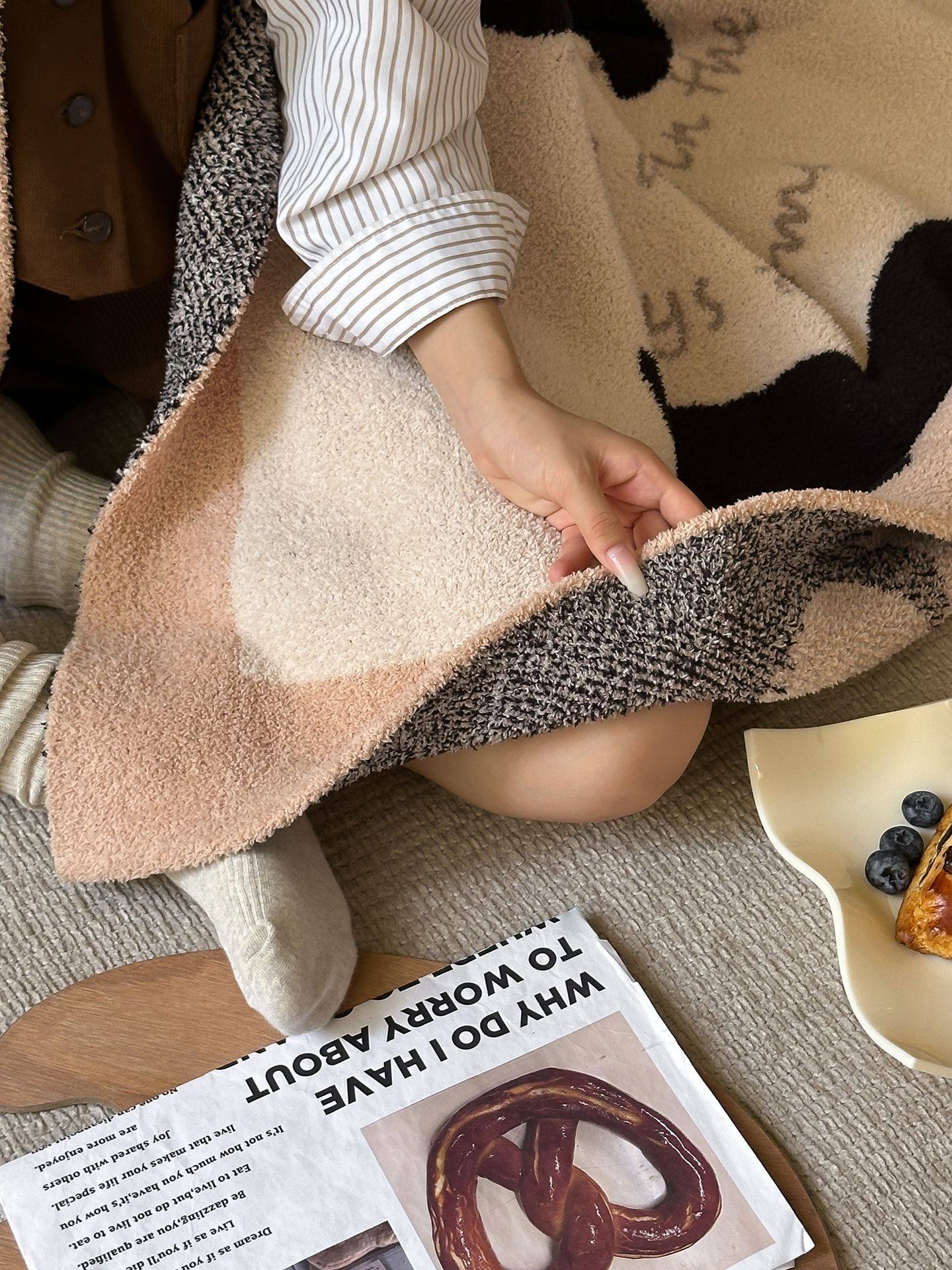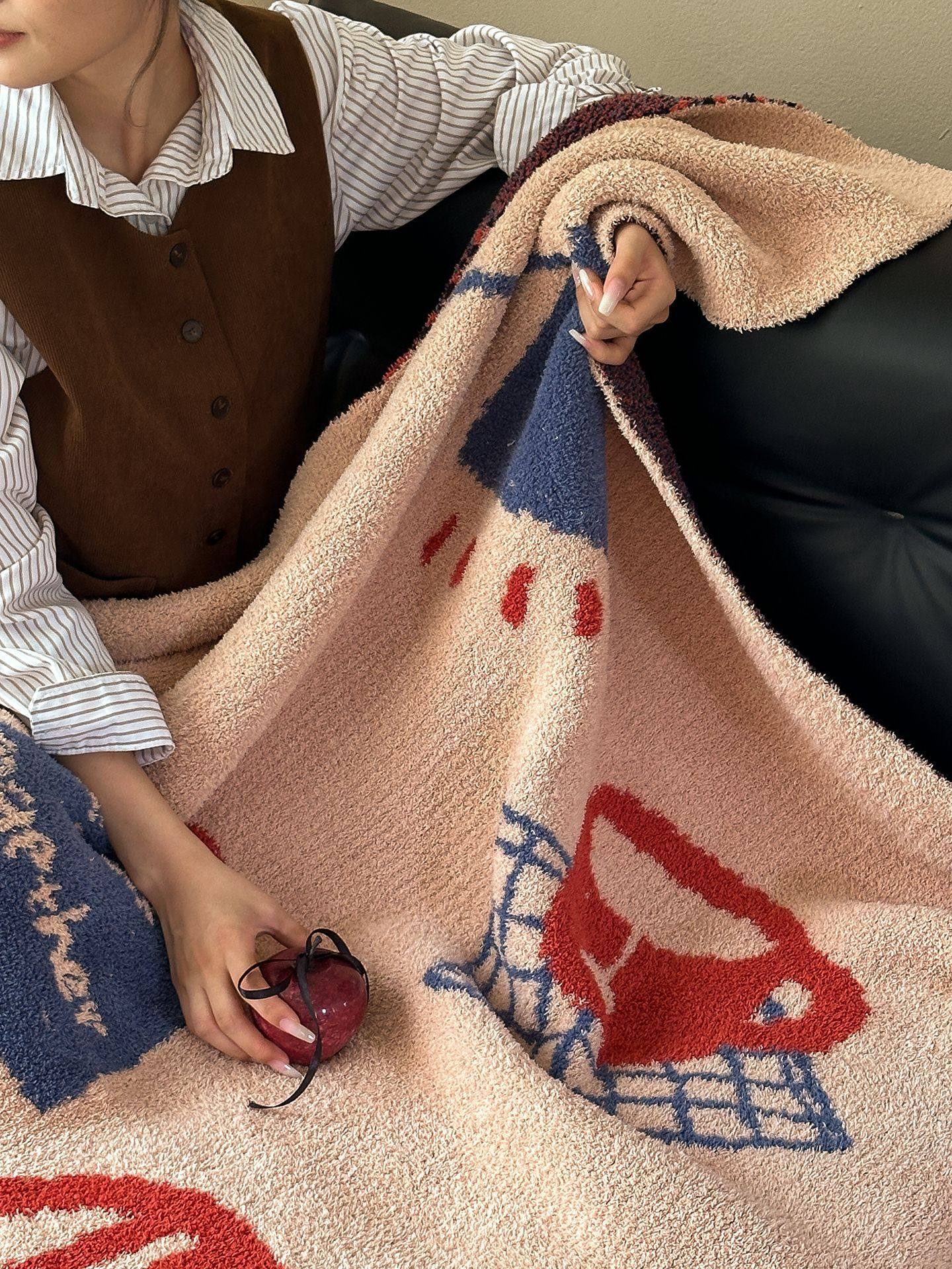Class a Knitted Blanket Half Velvet Blanket Sofa Cover Blanket Leisure Office Nap Nap Blanket Decorative Warm Blanket