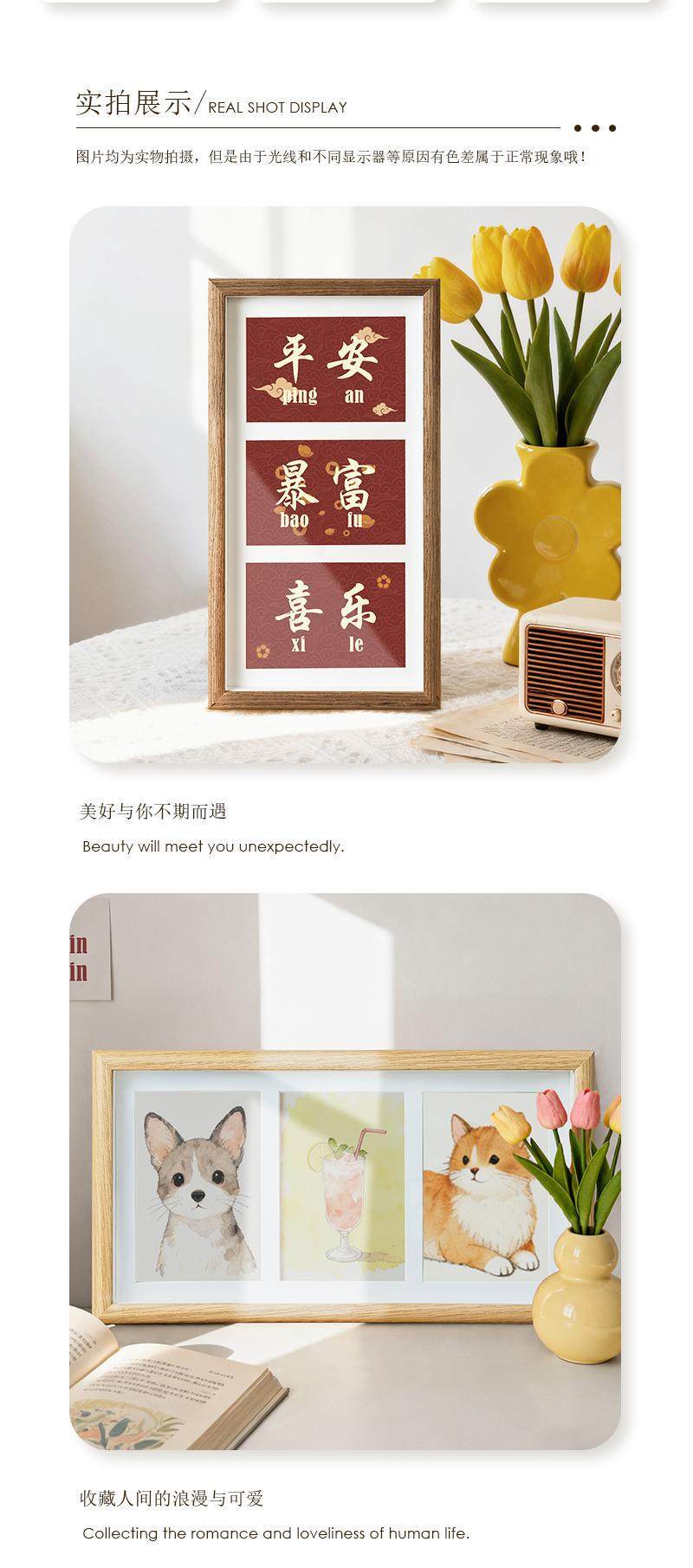 | Frame size | 3 pieces 6inch can be placed or hung (can hold 10.2*15.2cm photos),6inch single photo frame (can hold 1 10.2*15.2cm photo) |