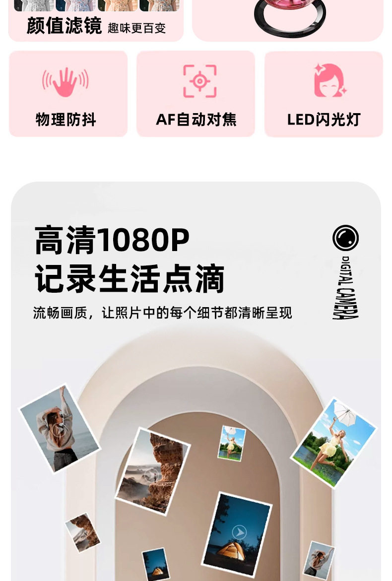 | Body color | The pink card-free card can only take five photos,The white card-free card can only take five pictures |