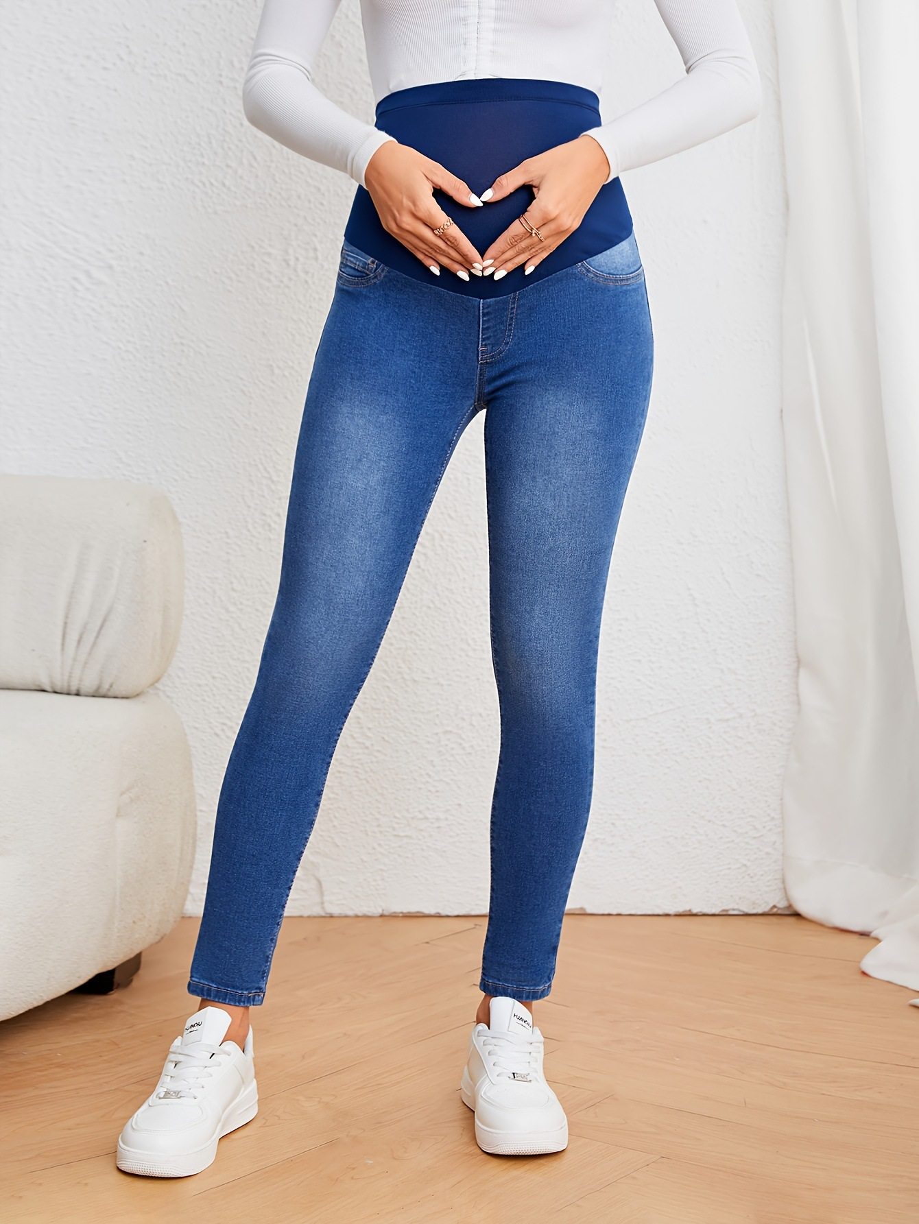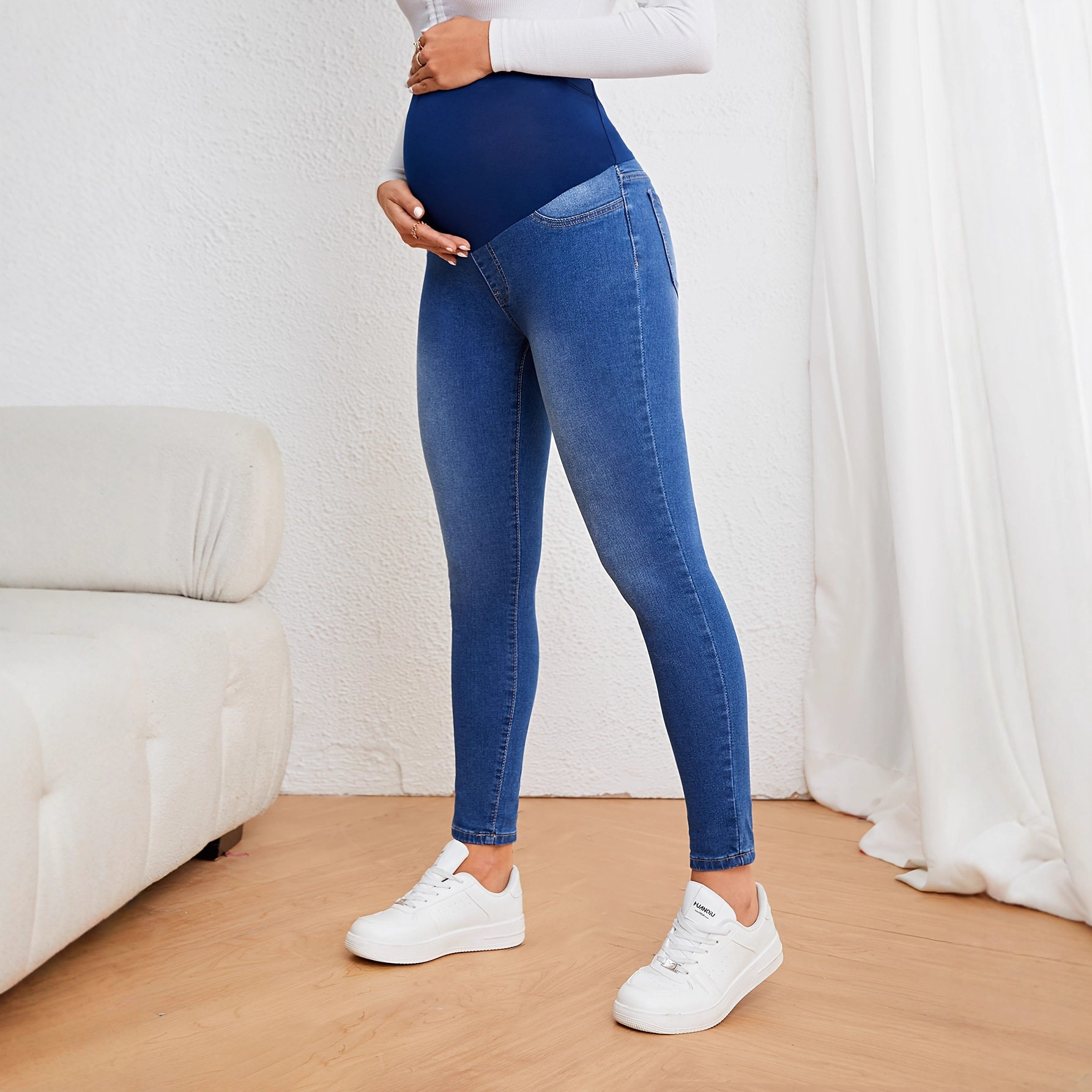 New Amazon Foreign Trade European and American Maternity Jeans Autumn and Winter Belly Support Pants Mid-Waist Elastic Casual Slimming Look Pants