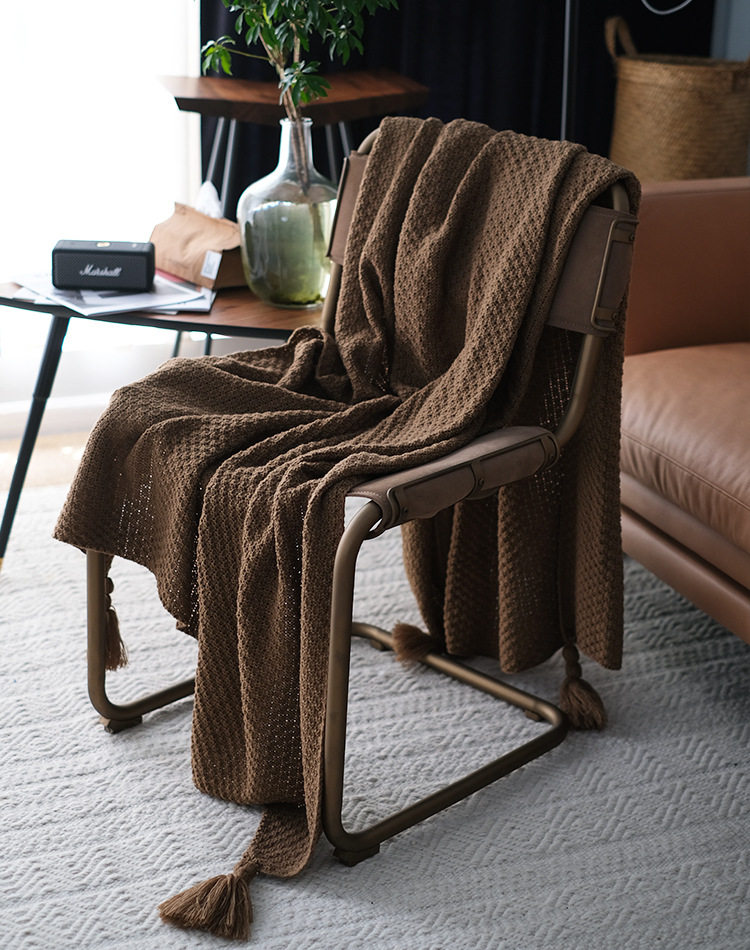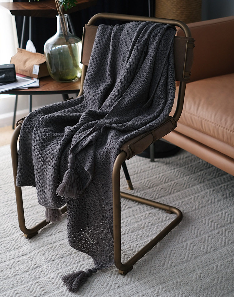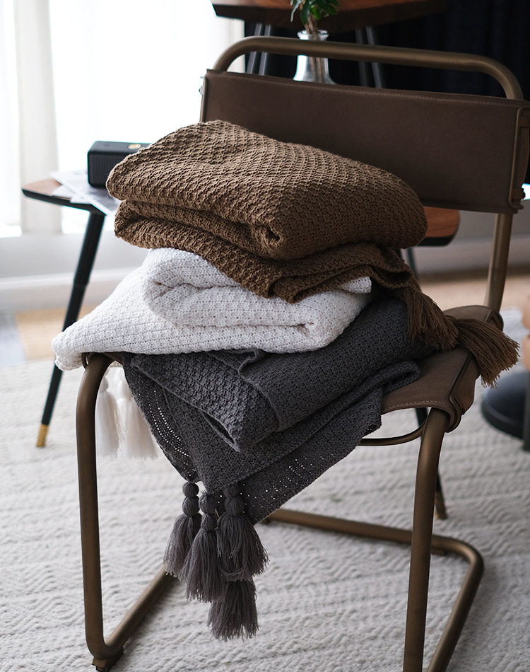 Nordic Simple Style Knitted Tassel Sofa Blanket Decorative Air Conditioning Blanket Ready for Delivery New Hanging Ball