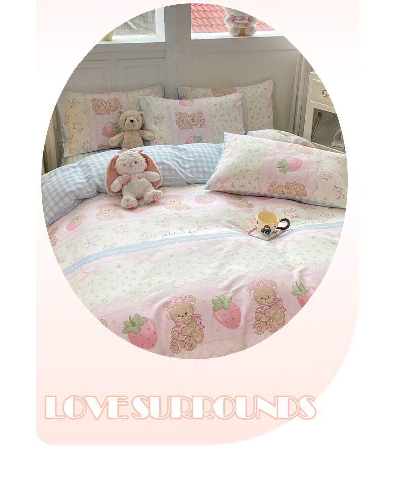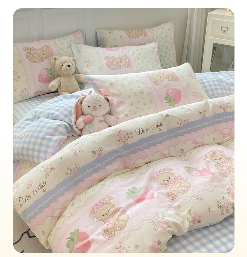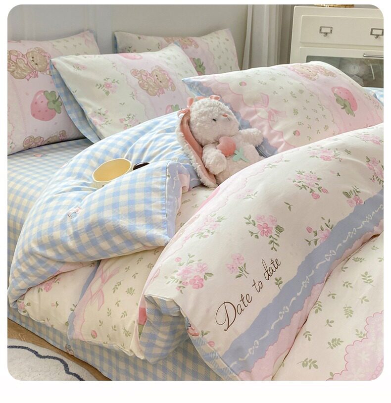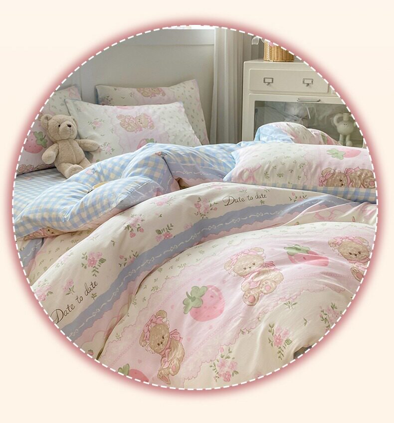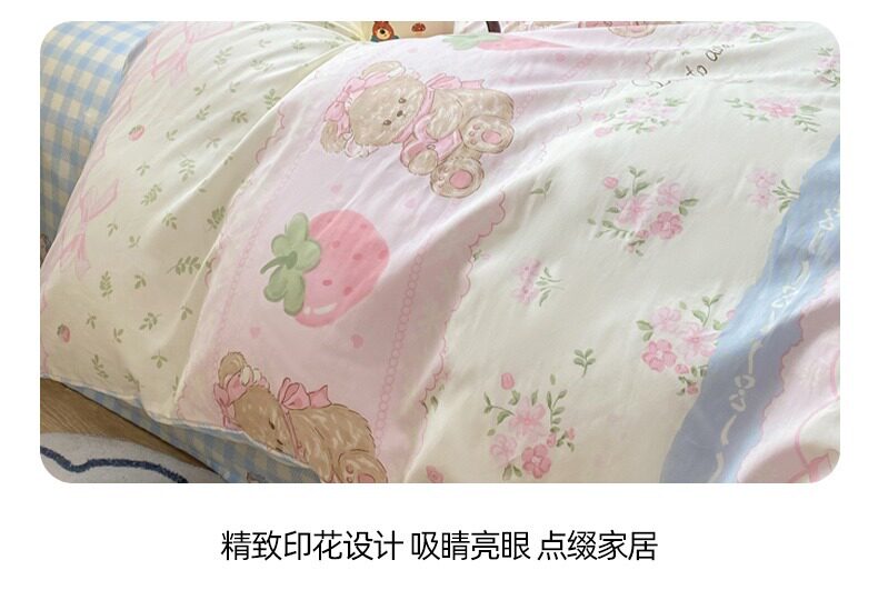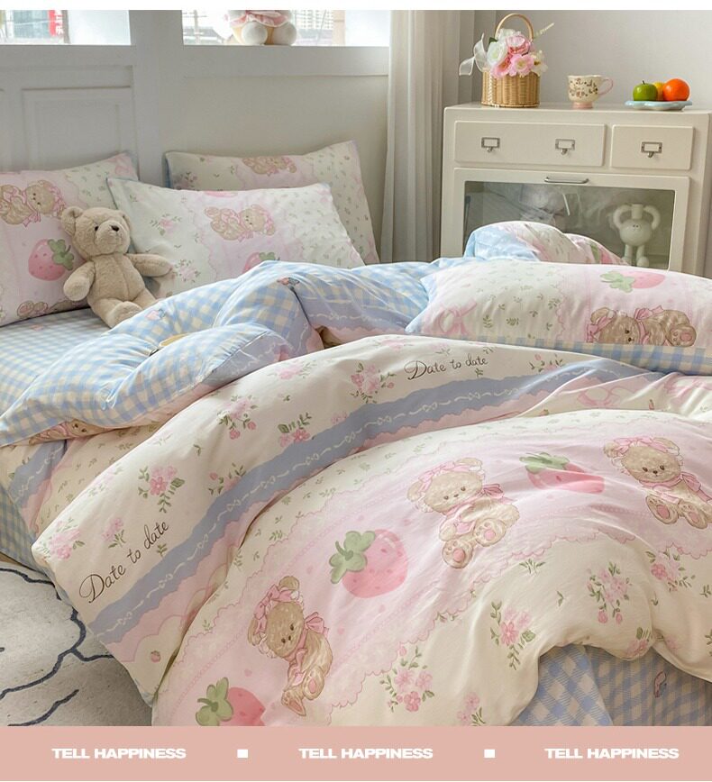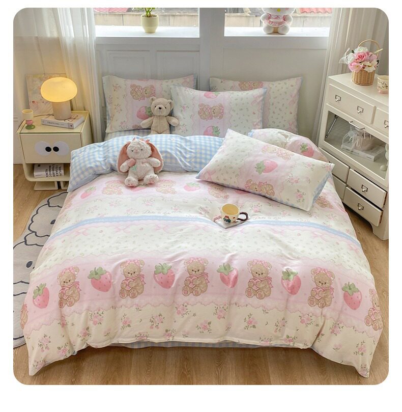 Class a 100% Pure Cotton Bedding Four-Piece Set, All-Cotton Bed Sheet and Duvet Cover, Double Three-Piece Set, Cartoon Pattern Bedding