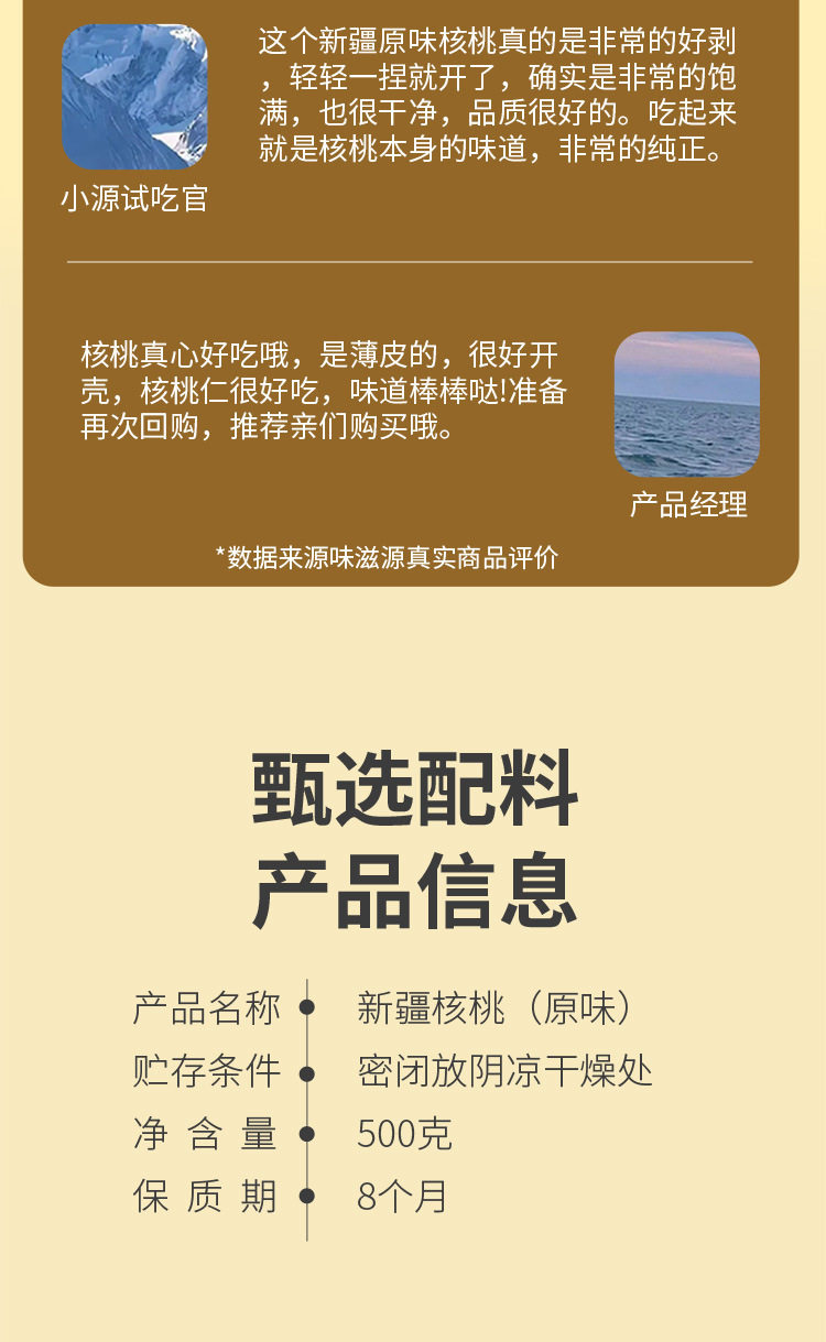 | Packaging specifications | 【 0.5kg 】original walnut 500g*1 bag,【 0.5kg 】roasted walnut herbal flavor 500g*1 bag |