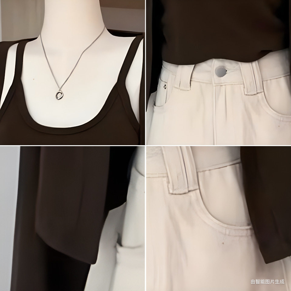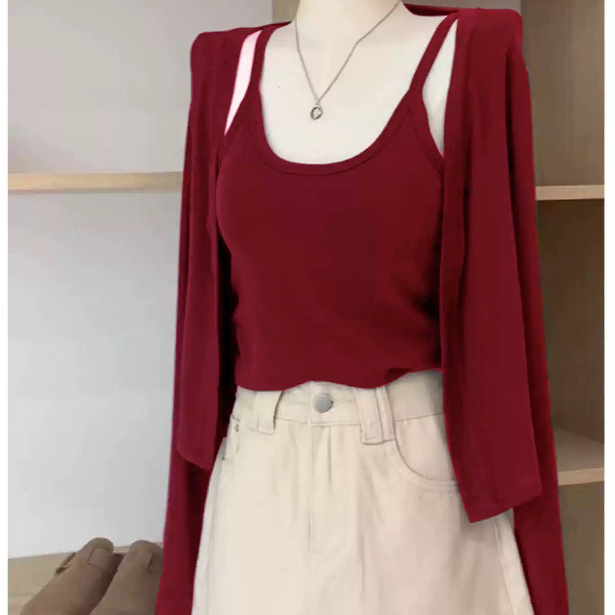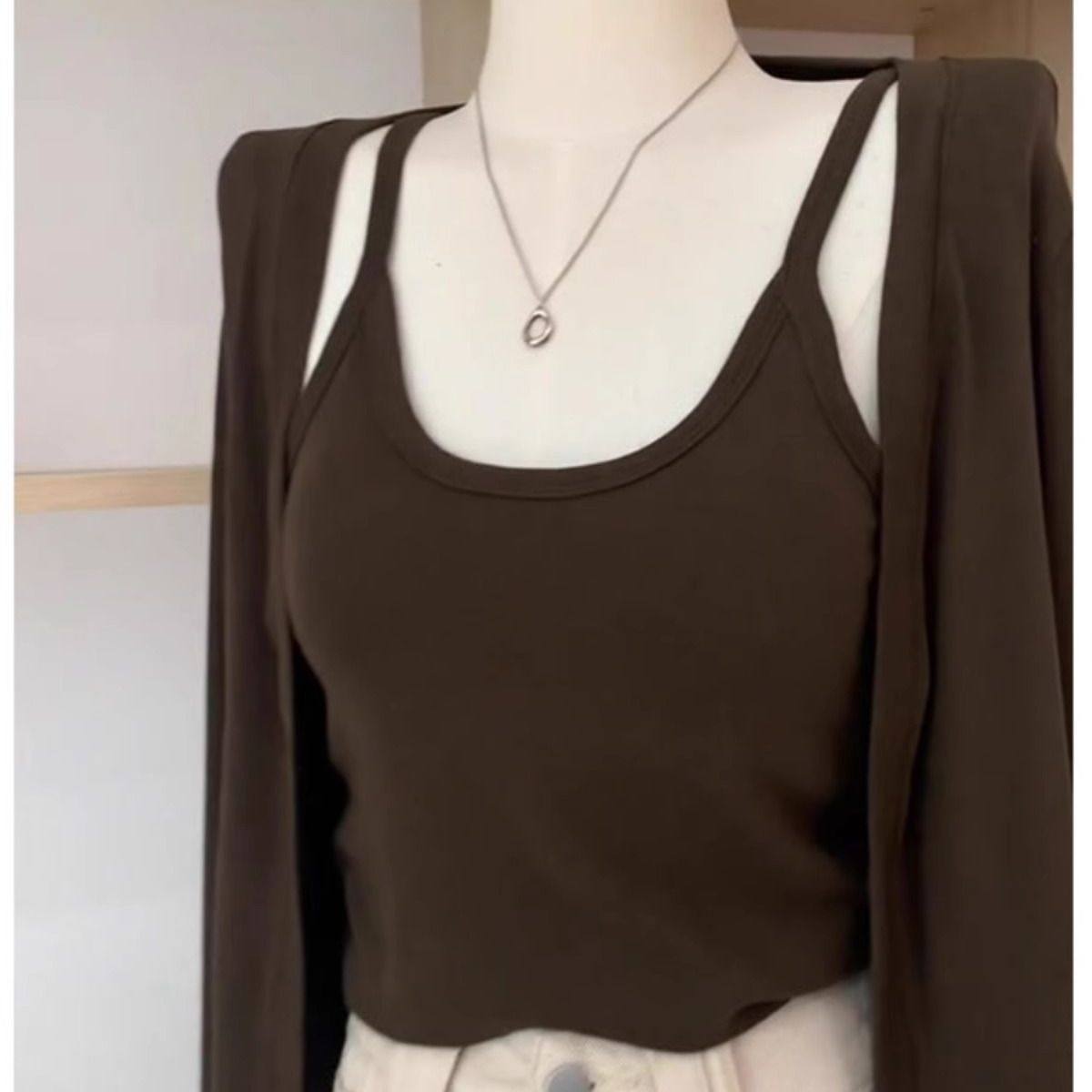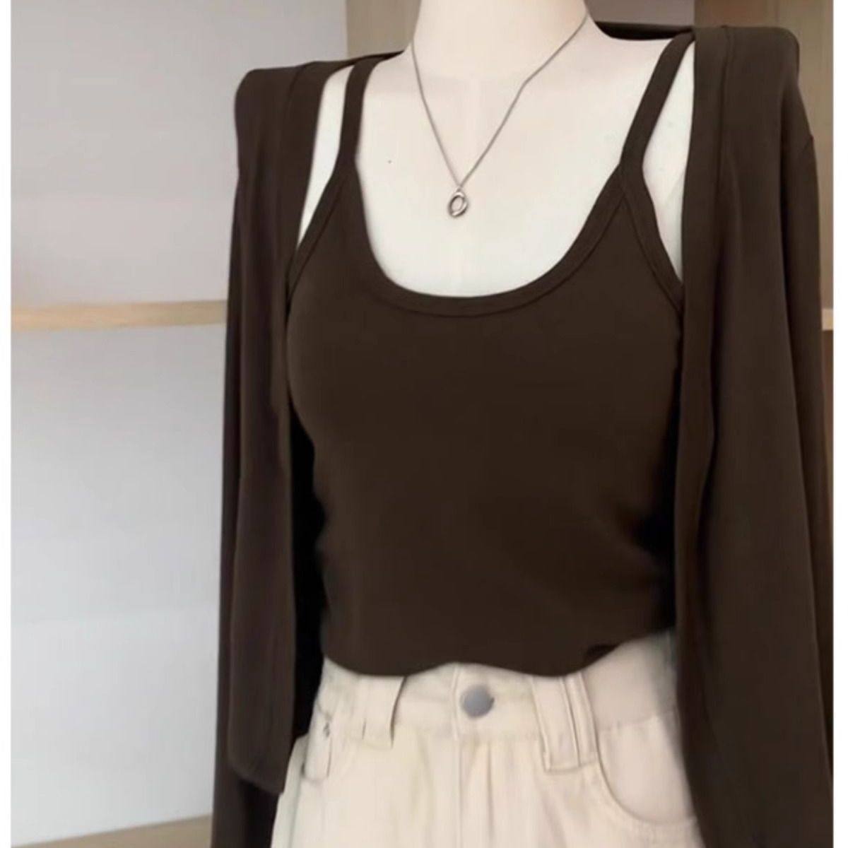 Modal Cotton Spring Sleeveless Suspender Cardigan Two-Piece Suit for Women Slimming Look Shawl Long-Sleeved Slim Top Outer Wear