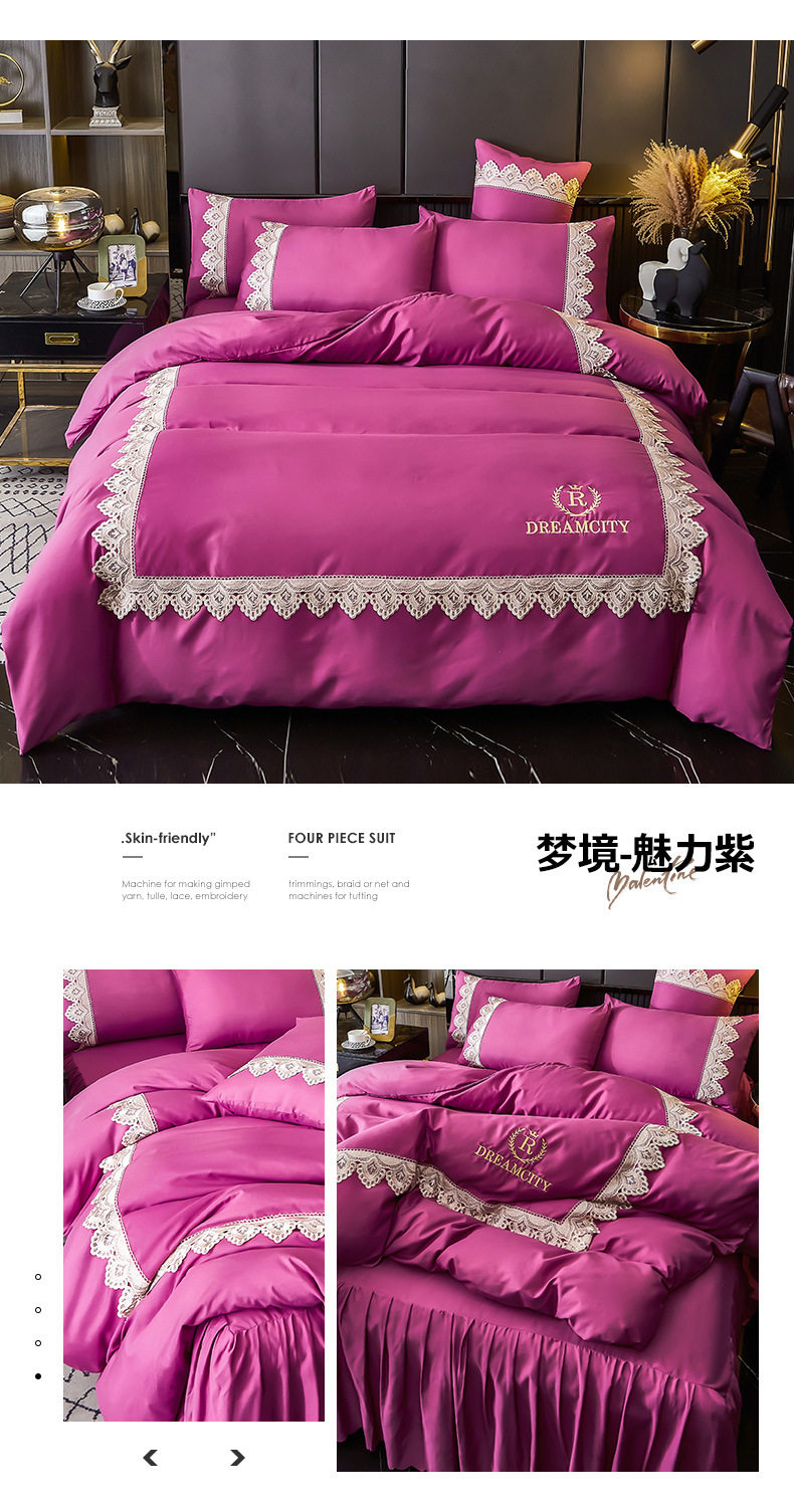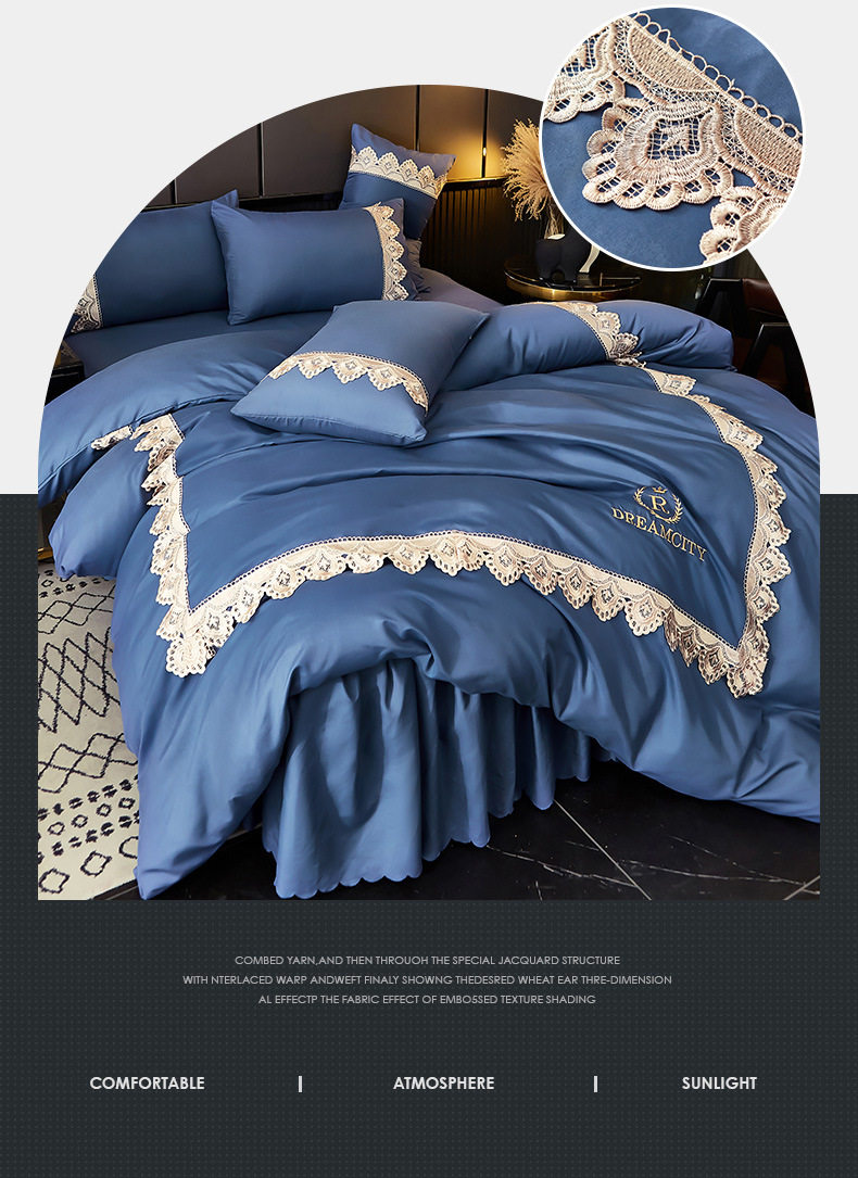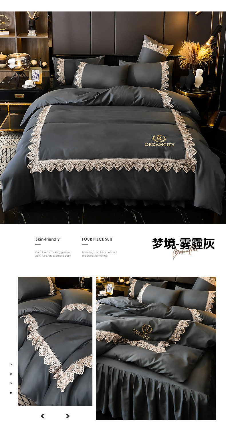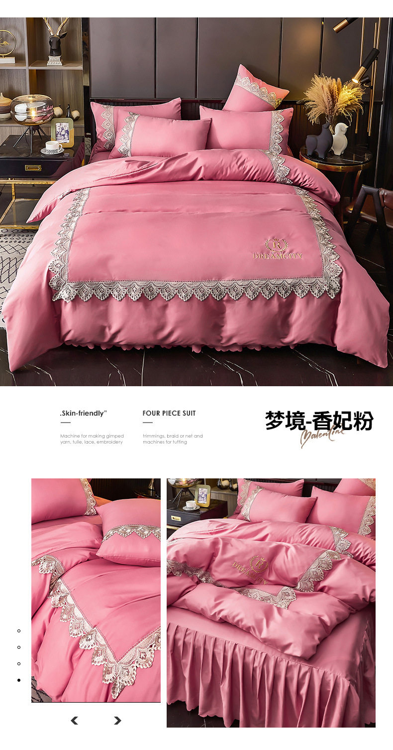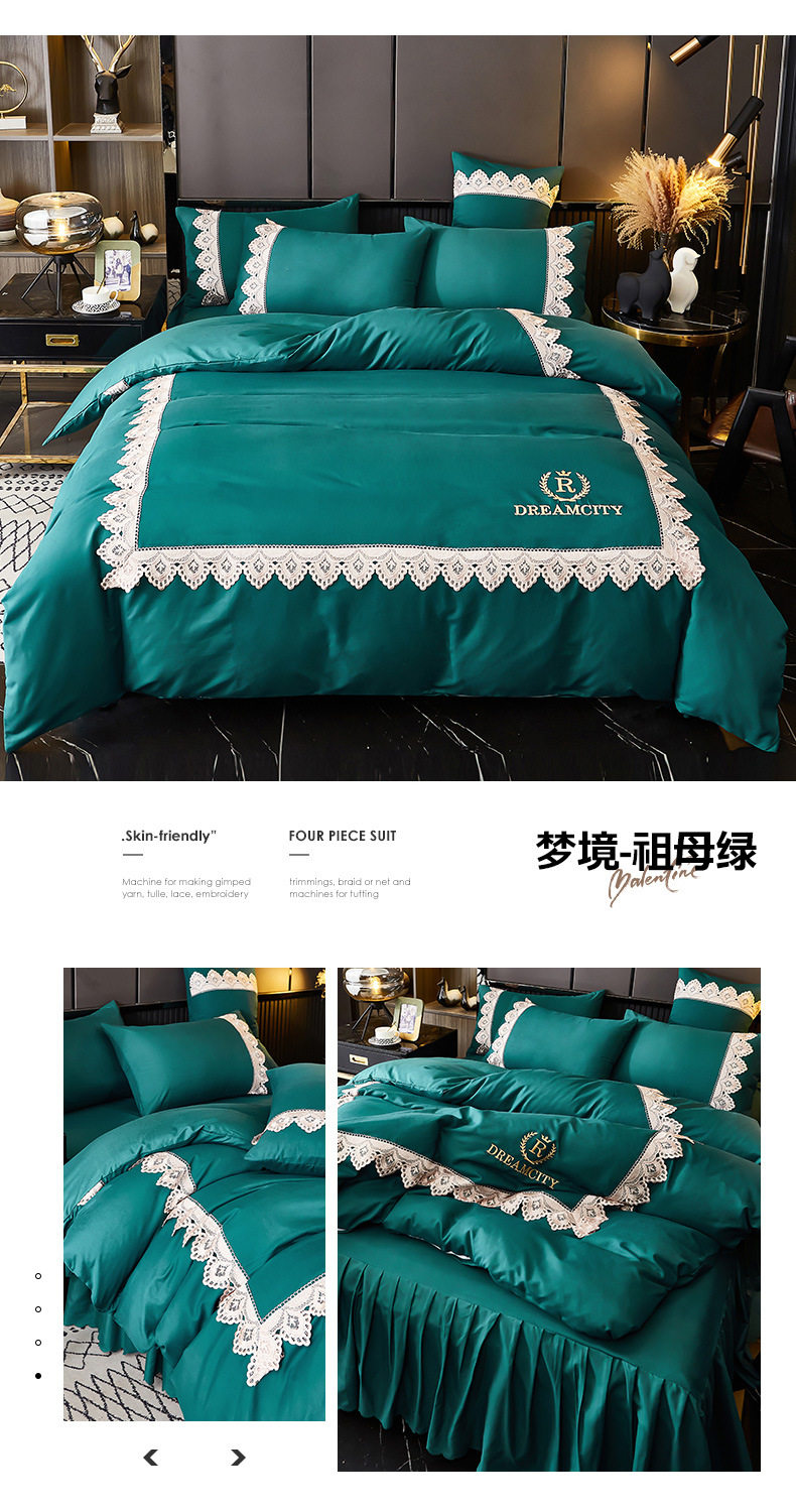 Cross-Border Amazon Light Luxury Collection Art Skin-Friendly Brushed European Lace Bed Skirt Bedspread Three or Four-Piece Set Factory Wholesale