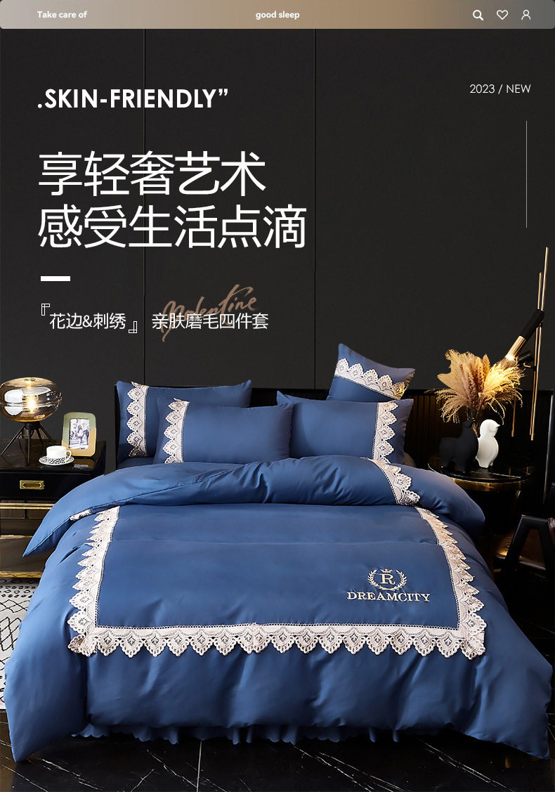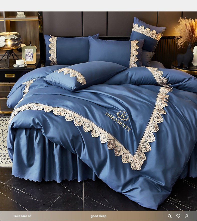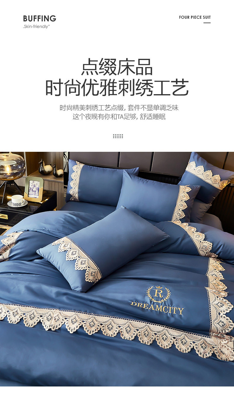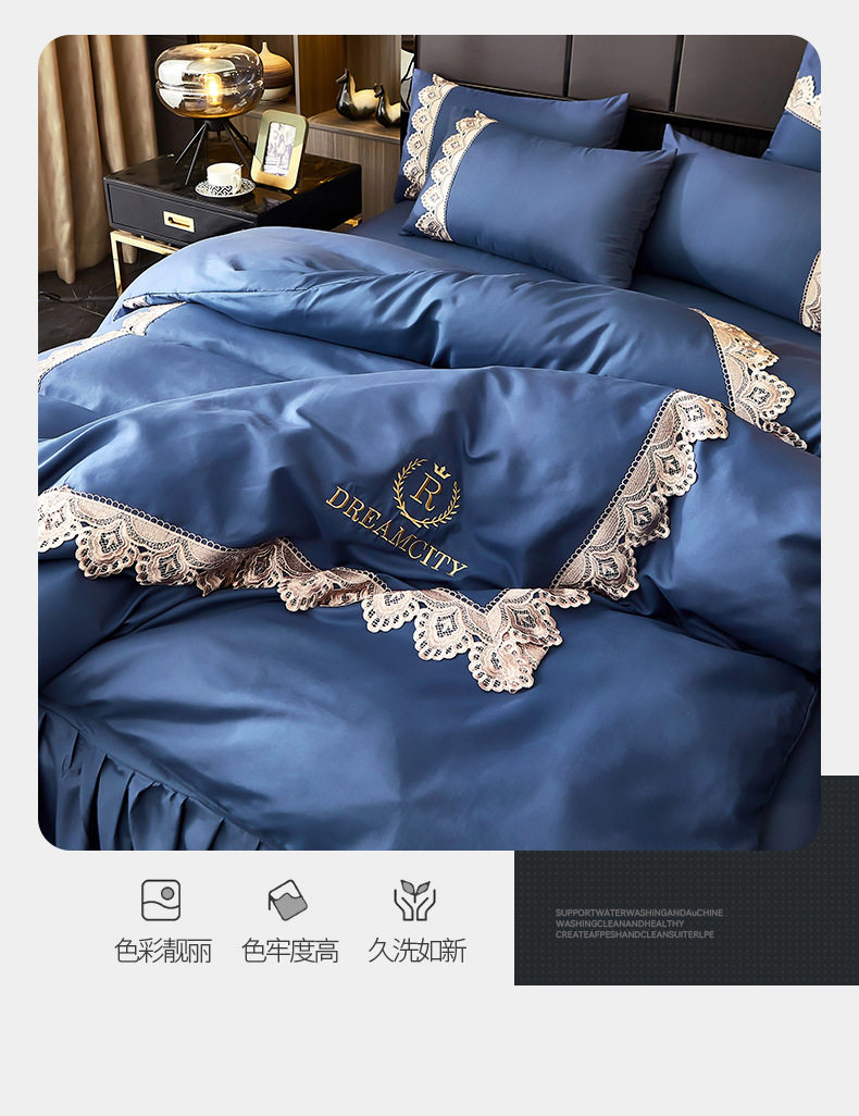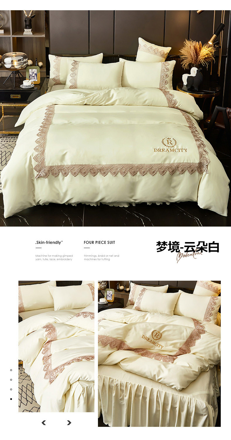 Cross-Border Amazon Light Luxury Collection Art Skin-Friendly Brushed European Lace Bed Skirt Bedspread Three or Four-Piece Set Factory Wholesale
