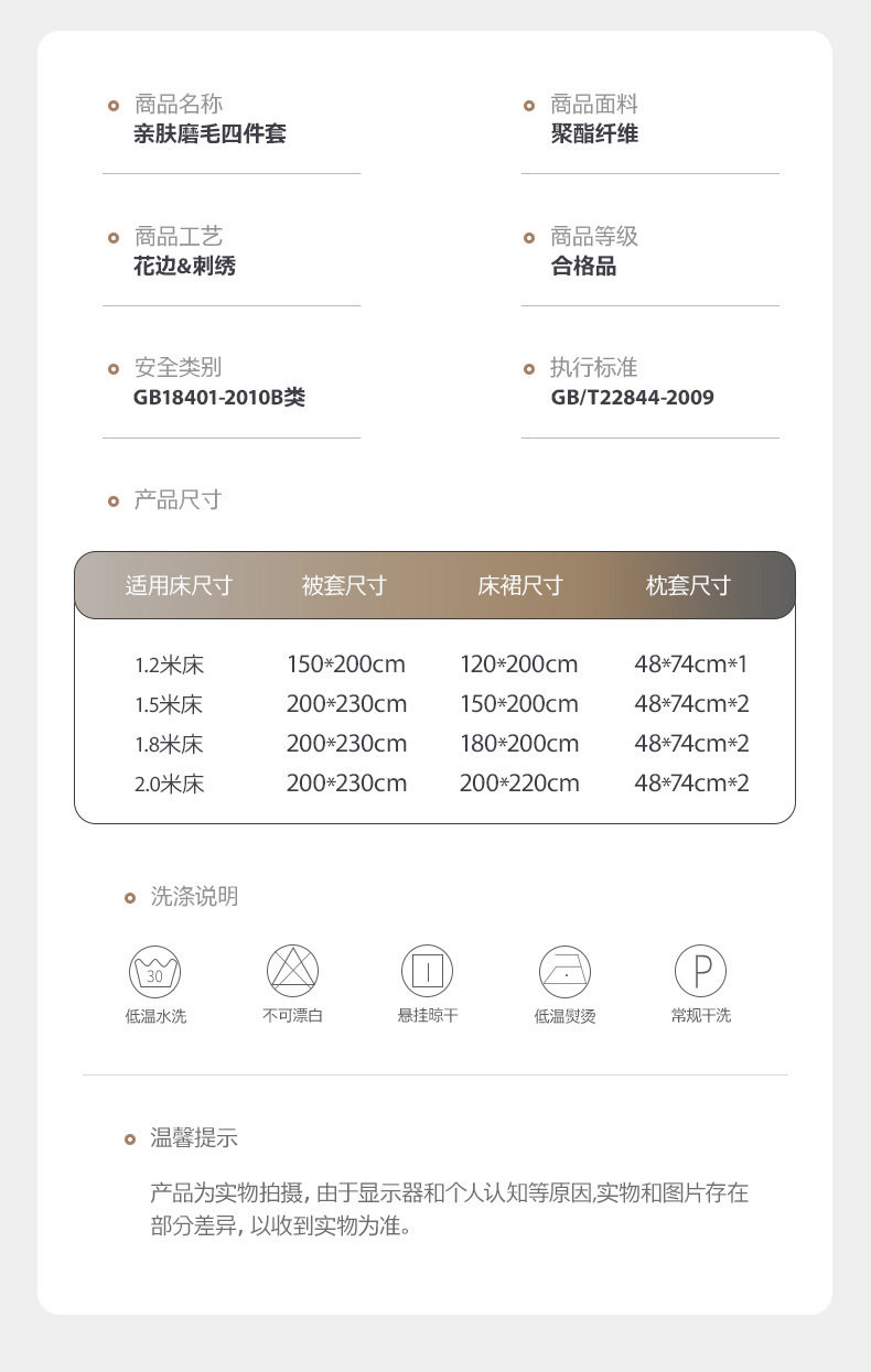 | Size specifications | 1.5m bed skirt four-piece set (quilt cover: 200*230cm),1.8m bed skirt four-piece set (quilt cover: 200*230cm),2.0m bed skirt four-piece set (quilt cover: 200*230cm) |