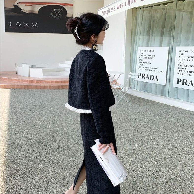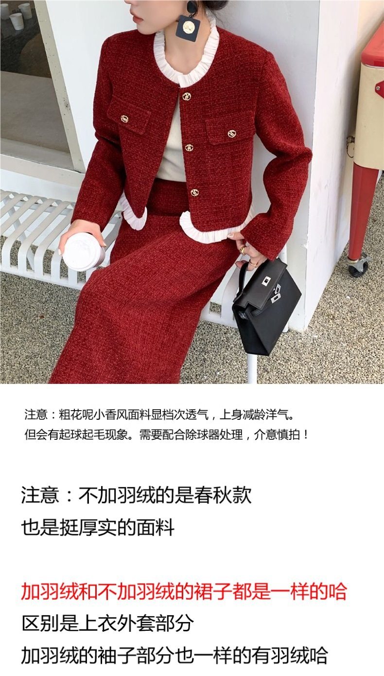 Tweed Style Down-Lined Short Jacket Women's Half-Length One-Step Skirt Two-Piece Set Women's Autumn and Winter New Suit Skirt Women