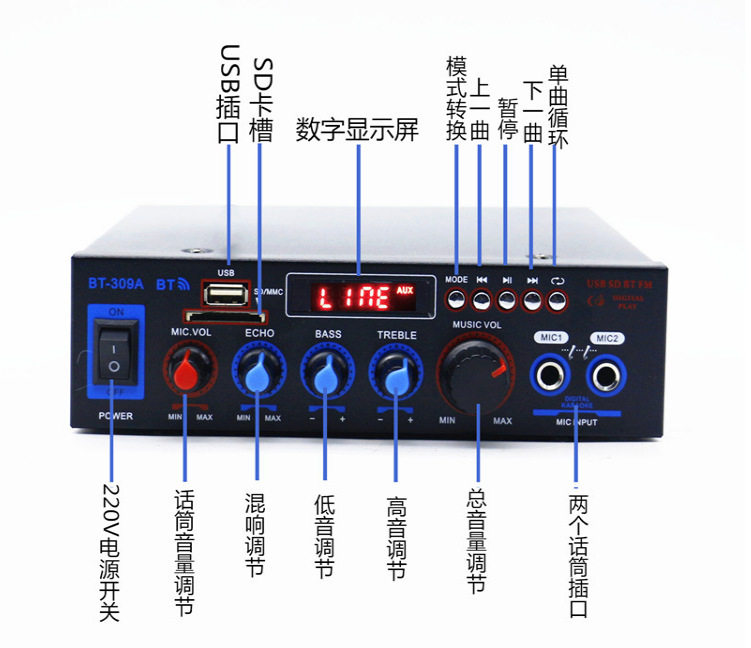 Mini Small Power Amplifier Speaker Power Amplification Plug-In Card U Disk Radio Dc 12V 220V Bluetooth Power Amplifier