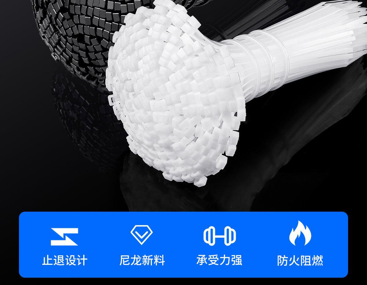 Self-Locking Nylon Cable Ties 3*100mm Black and White Plastic Lock Buckle for Tying and Fixing