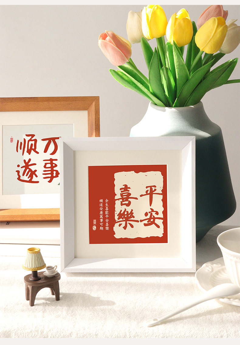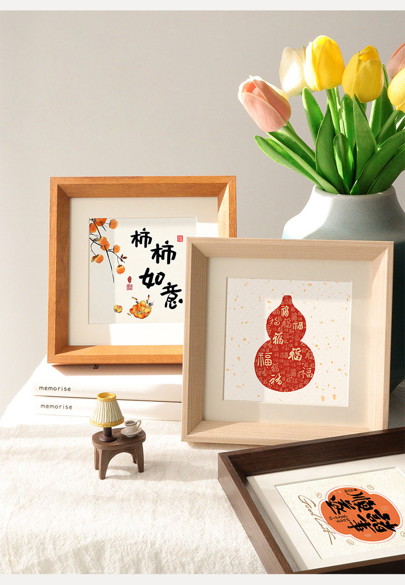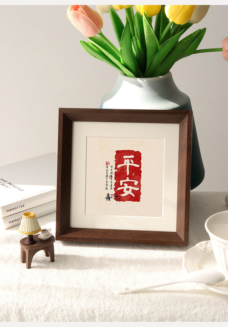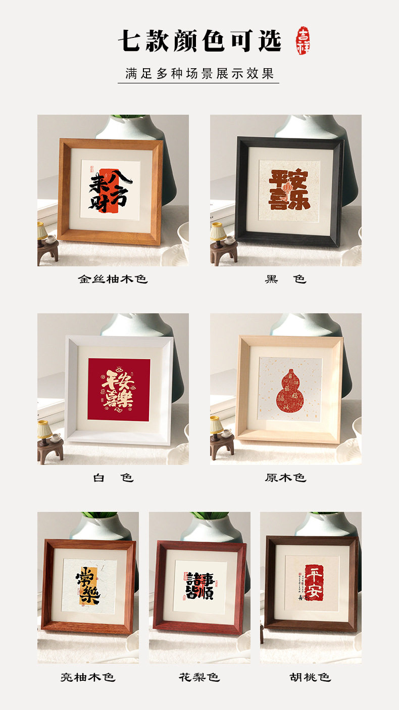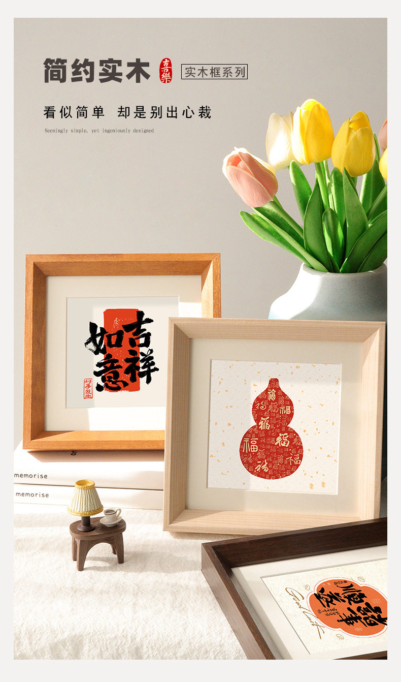 Solid Wood Picture Frame, Square Calligraphy and Painting Display Frame, New Chinese-Style Home Decoration Ornament, Empty Frame