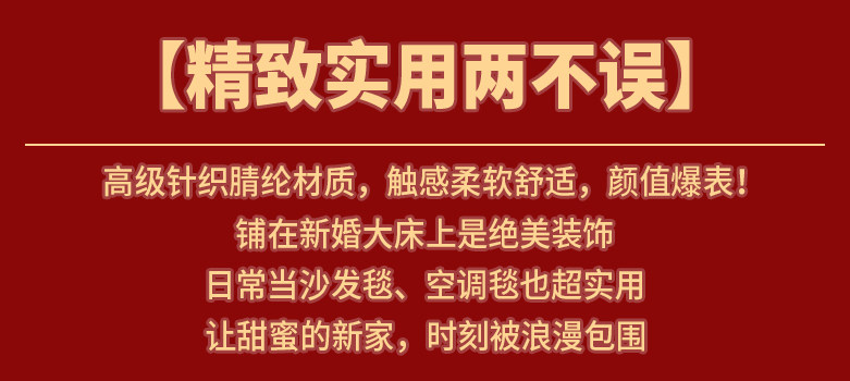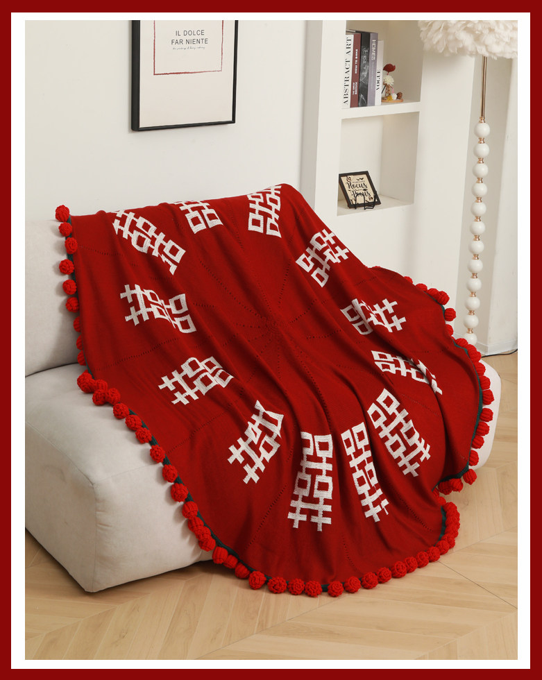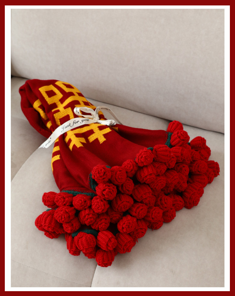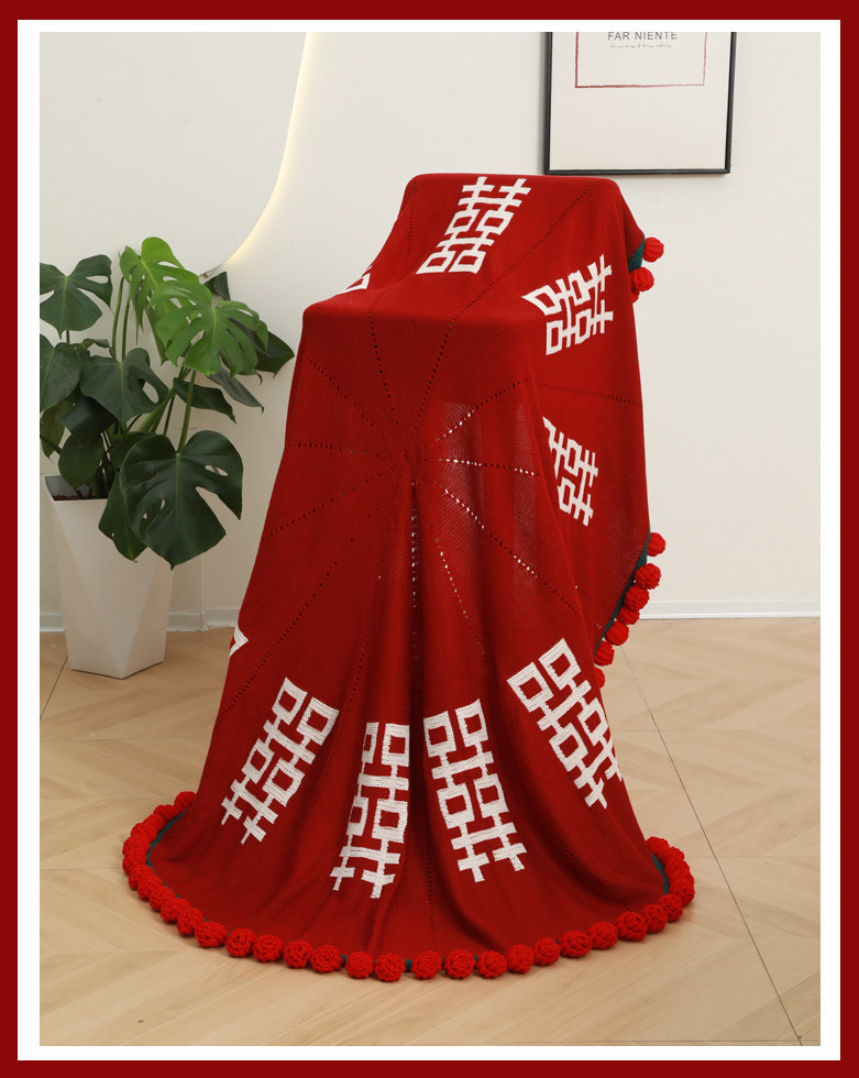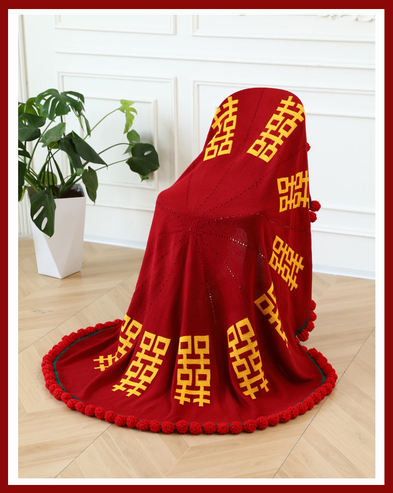 Finished Product: Double Happiness Rose Bouquet Blanket for Engagement and Wedding, Bride Gift, New Chinese Style Double Happiness Blanket Shawl Cover Blanket