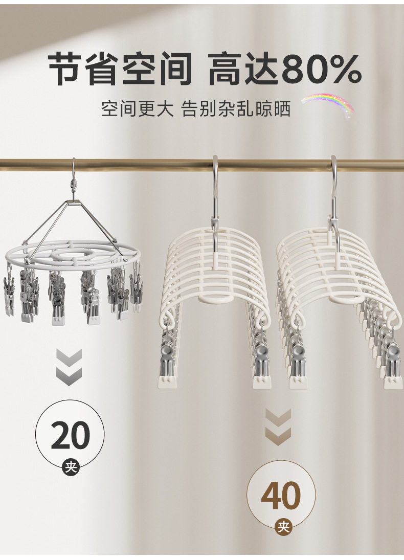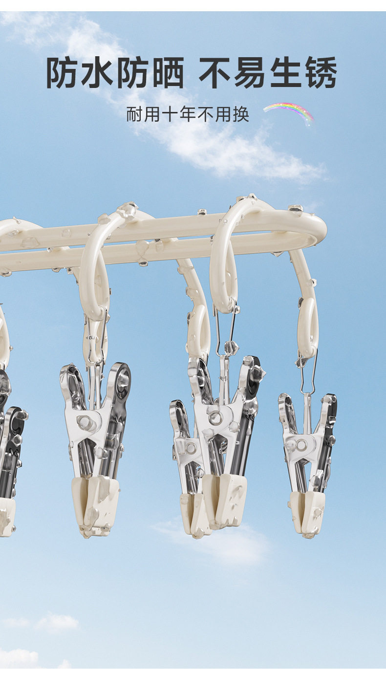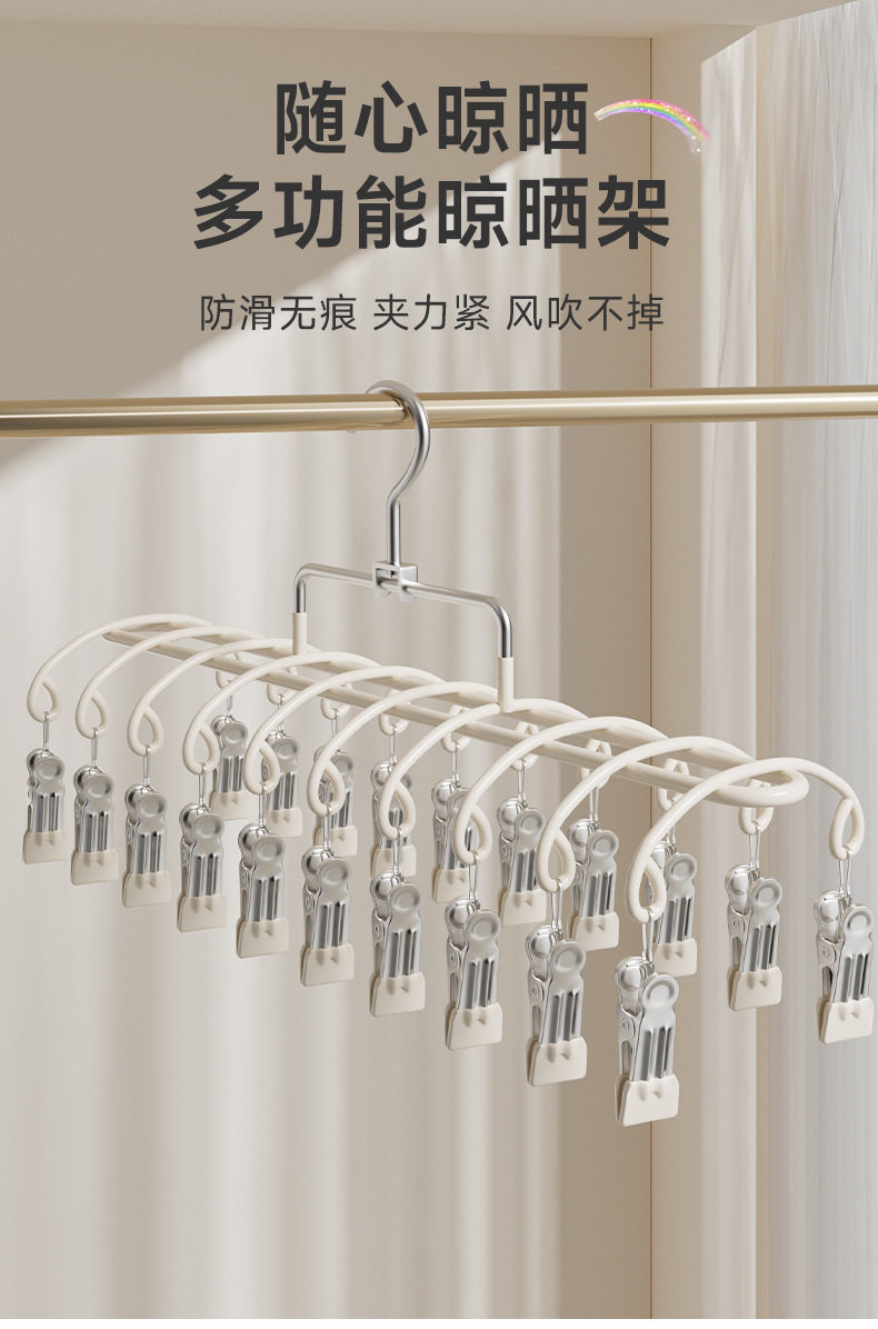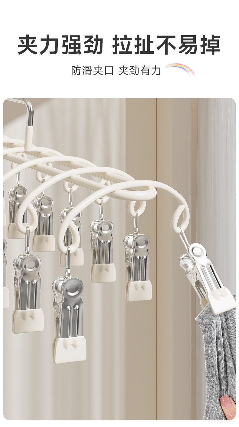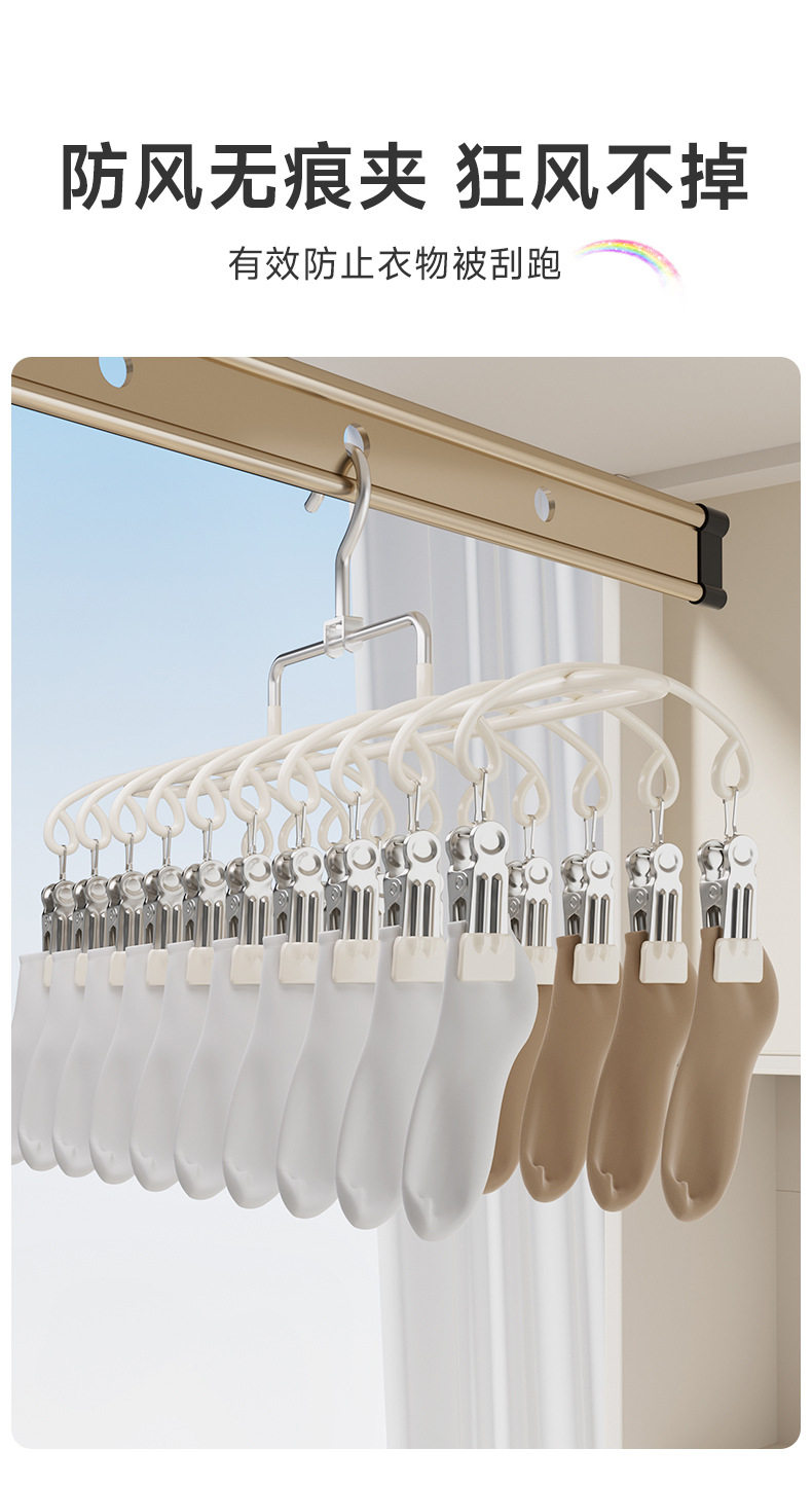 Stainless Steel Sock Drying Rack with Multiple Clips for Student Dormitory, Home Balcony Windproof Drying Rack for Underwear and Socks