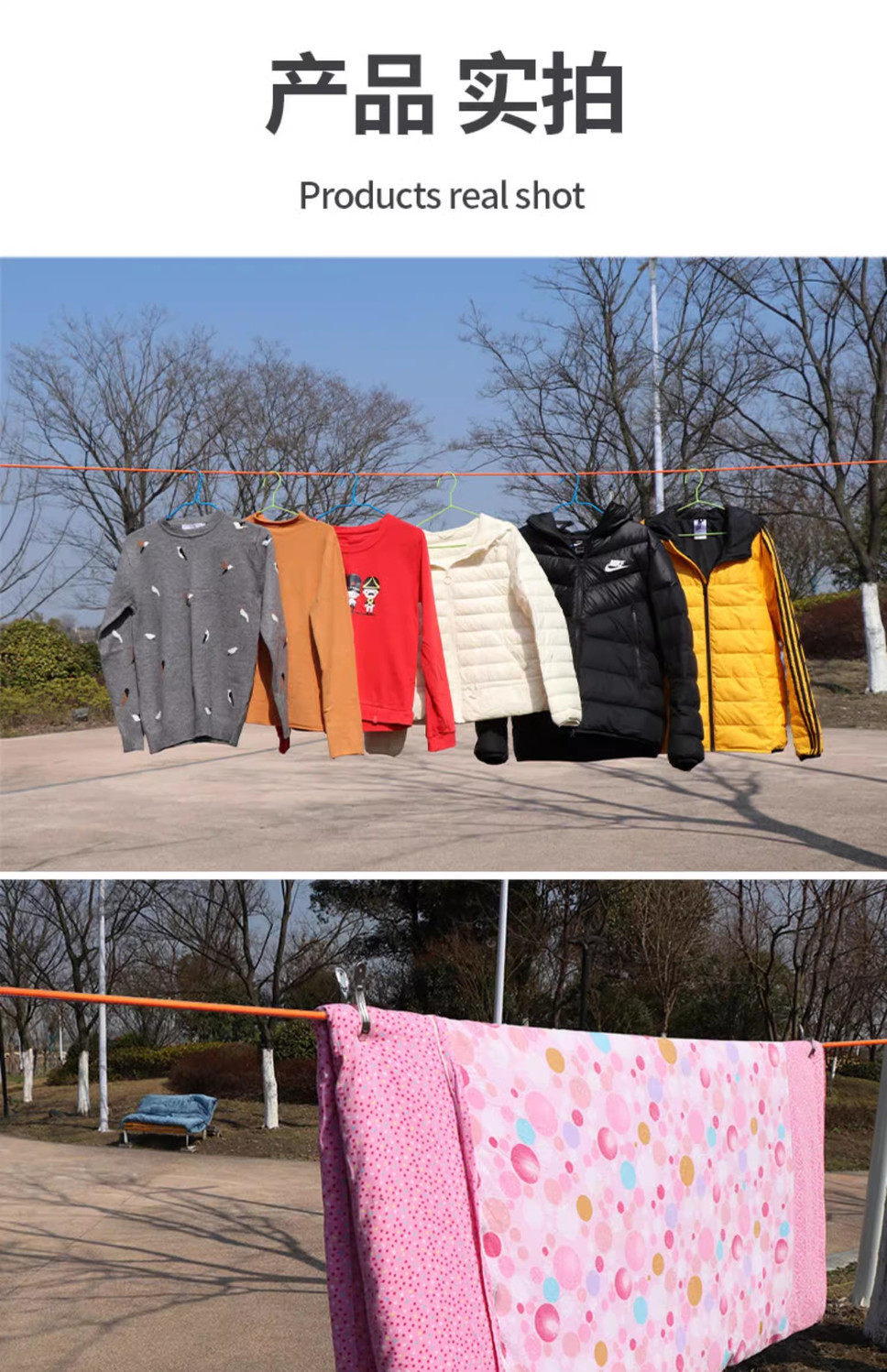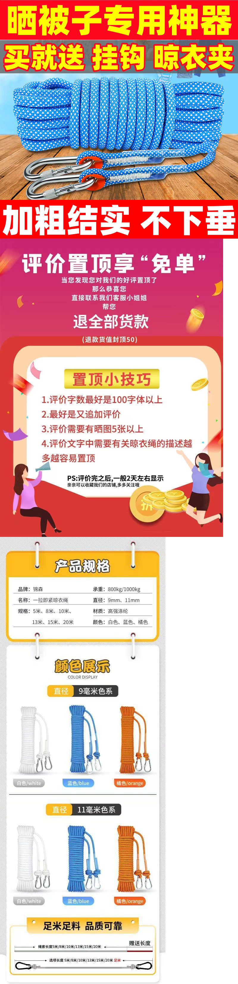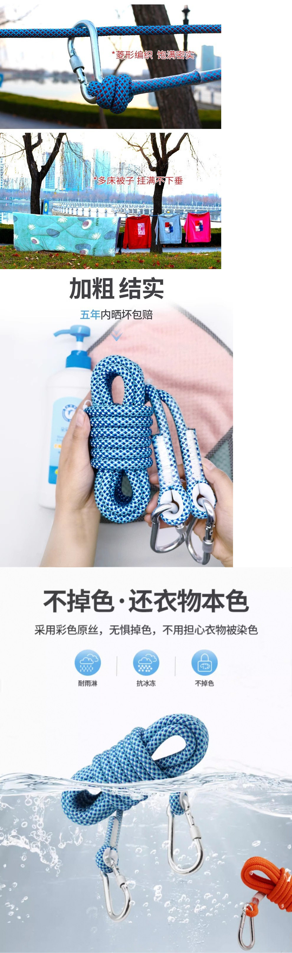| Specifications | [steel wire core] 3m long single rope [clothes and quilt clips],[steel wire core] 3m long rope [2 hooks + quilt clips included],[steel wire core] 5m long rope [2 hooks + quilt clips included],[steel wire core] 8m long rope [2 hooks + quilt clips included],[steel wire core] 10m long rope [2 hooks + quilt clips included],[steel wire core] 13m long rope [2 hooks + quilt clips included],[steel wire core] 15m long rope [2 hooks + quilt clips included],[steel wire core] 18m long rope [2 hooks + quilt clips included],[steel wire core] 20m long rope [2 hooks + quilt clips included],[steel wire core] 25m long rope [2 hooks + quilt clips included],[steel wire core] 30 meters long rope [2 hooks + quilt clips included] |