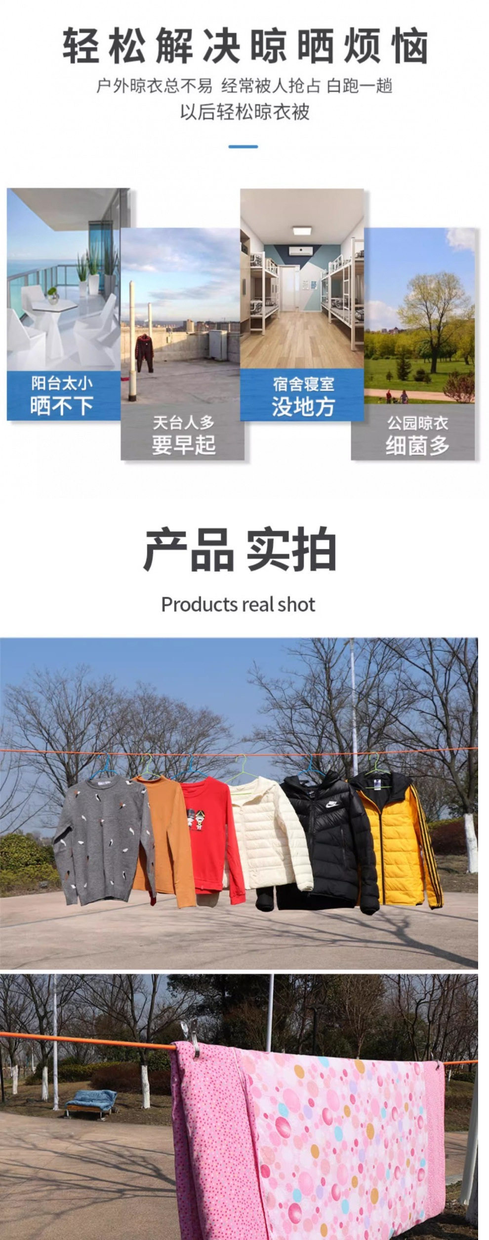 Outdoor Thickened Steel Wire Core Clothesline for Balcony or Rooftop, a Magic Tool for Drying Quilts and Clothes, with Anti-Slip Rope
