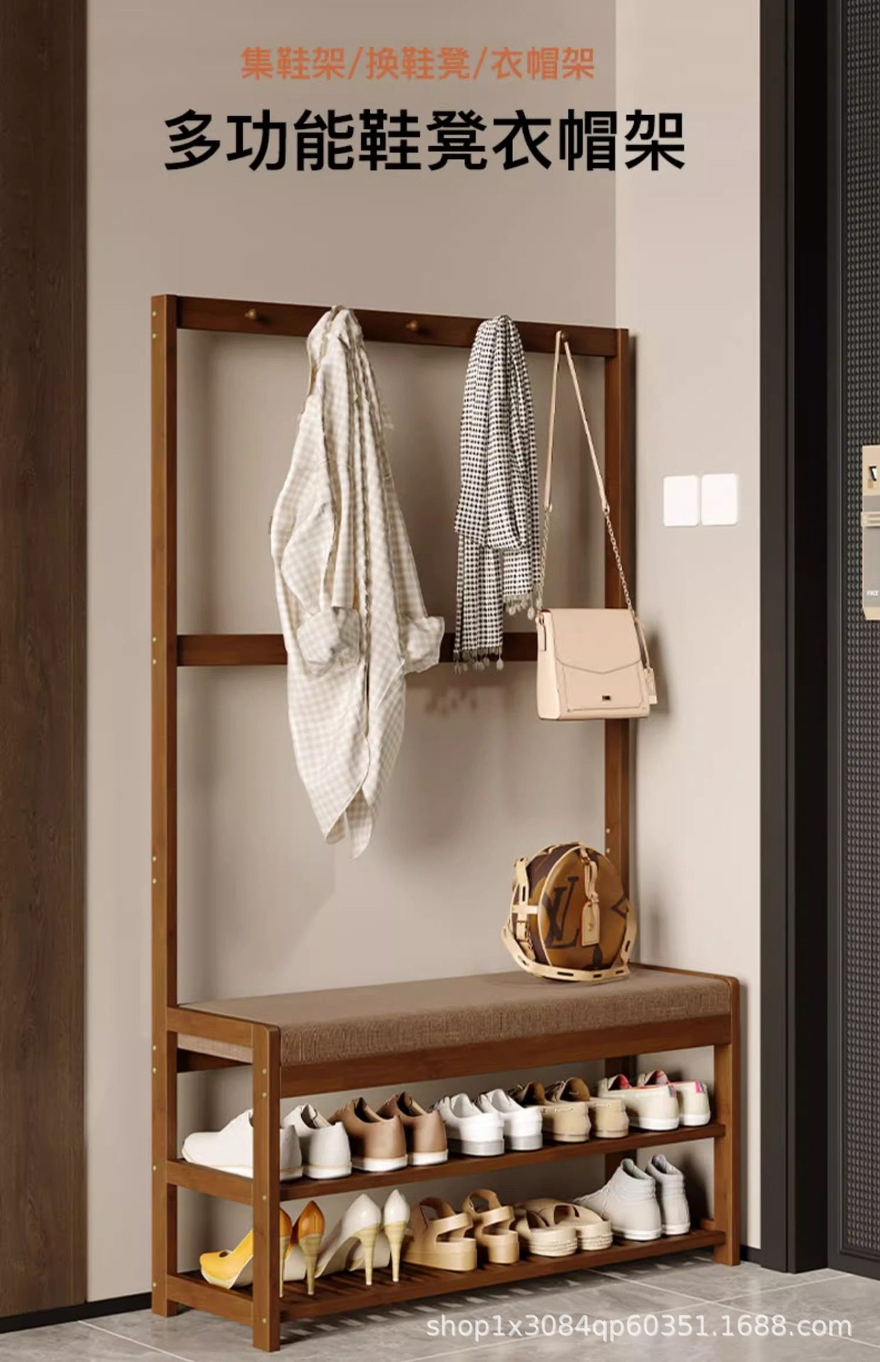 Clothes Rack, Floor-Standing, Bedroom Entrance, Foyer Combination, Multi-Functional Shoe-Changing Bench, Coat Rack, Integrated Simple Clothes Rack
