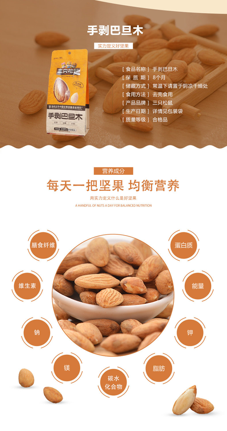 [Three Squirrels Hand-Peeled Almonds 100G]Snacks Nuts Roasted Goods Daily Dried Fruits Internet-Famous Almonds