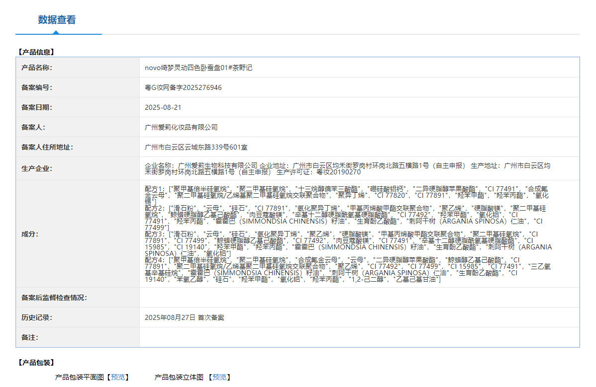 | Non-special cosmetics registration certificate number | Guangdong g makeup network preparation number 2025276946 |