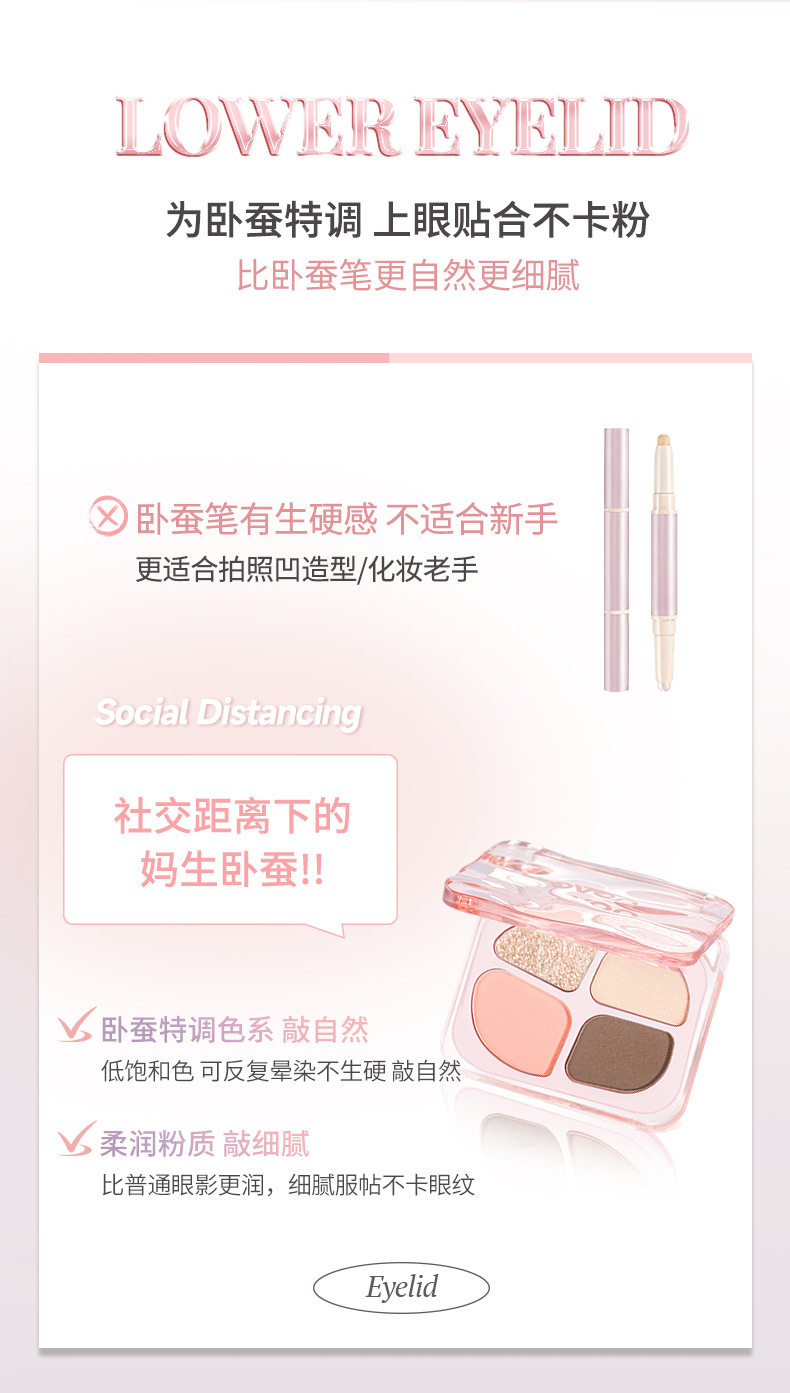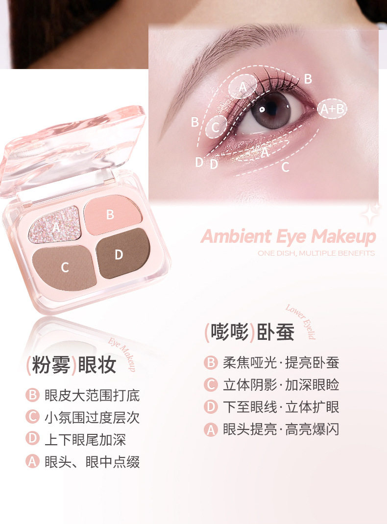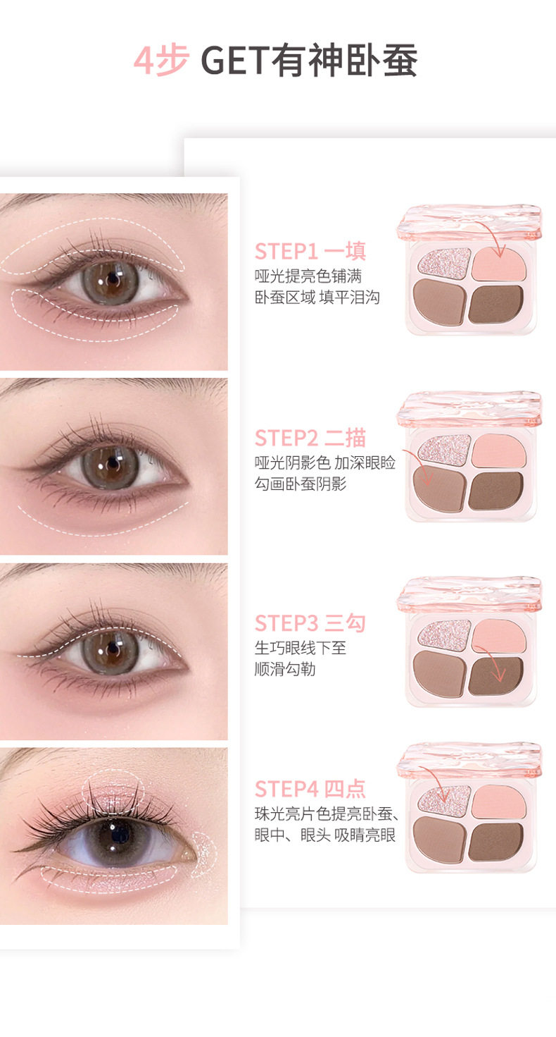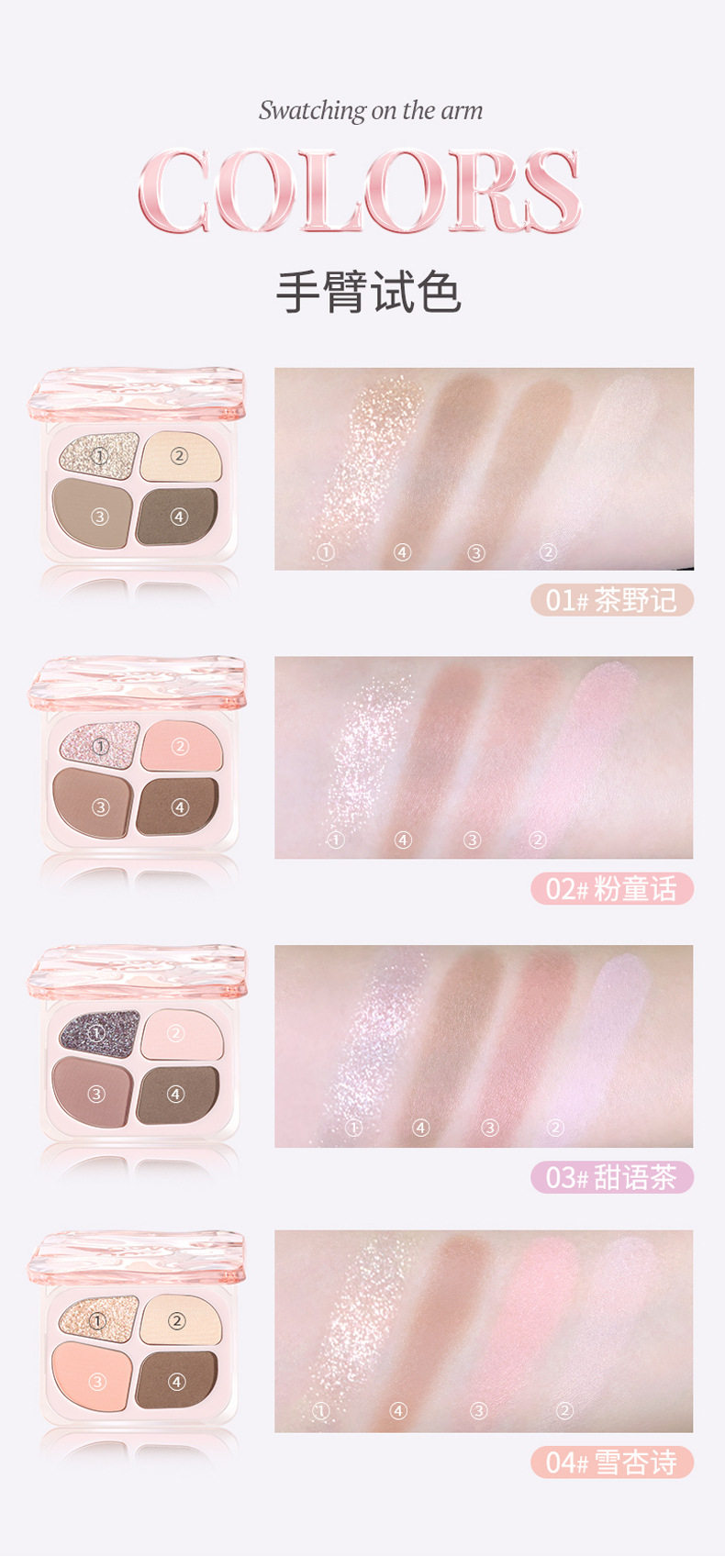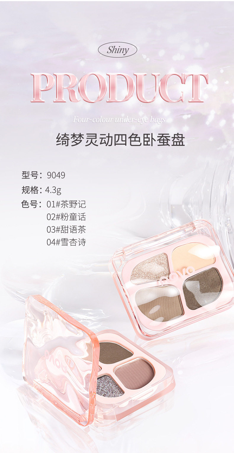 Novo Smart Four-Color Eyeshadow Palette with Pearlescent Highlighter and Shimmering Shadow for Brightening and Contouring