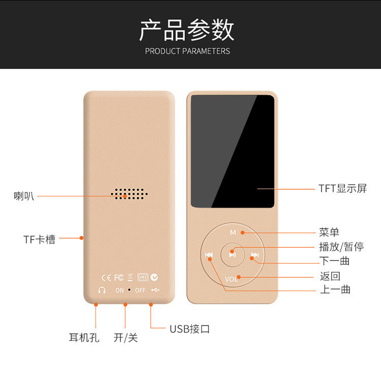 Student Version Mp3 Player Walkman Mp4 Music English Small Mp5 Card Type Compact Portable External Speaker