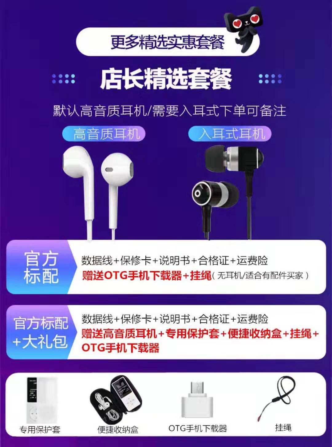 | Body color | Black [no memory, you need to bring your own memory card] [no headphones/gifts] [bare metal version],Black [comes with headphones/protective case/otg/lanyard],White [comes with headphones/protective case/otg/lanyard],Red [comes with headphones/protective case/otg/lanyard],Pink [comes with headphones/protective case/otg/lanyard],Dark color [comes with headphones/protective case/otg/lanyard],Sky blue [comes with headphones/protective case/otg/lanyard],Green [comes with headphones/protective case/otg/lanyard],White [no memory, you need to bring your own memory card] [no headphones/gifts] [bare metal version] |