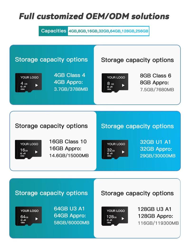 | Capacity | 128mb,512 mb,256mb,1 gb,2 gb,4gb,8gb,16 gb,32 gb,64 gb,128 gb,U3class108gb,U3class1016gb,U3class1032gb,U3class1064gb,U3class10128gb,U3class10256gb |