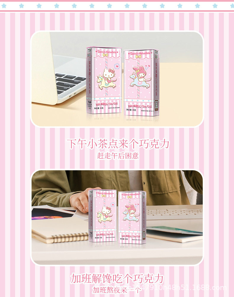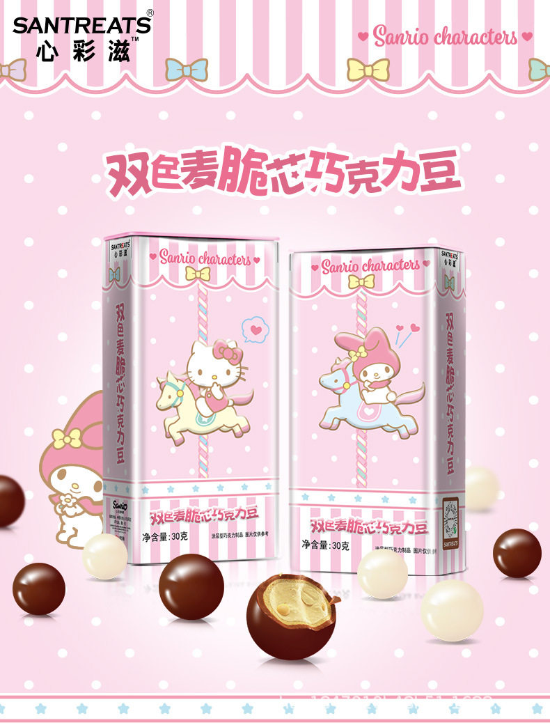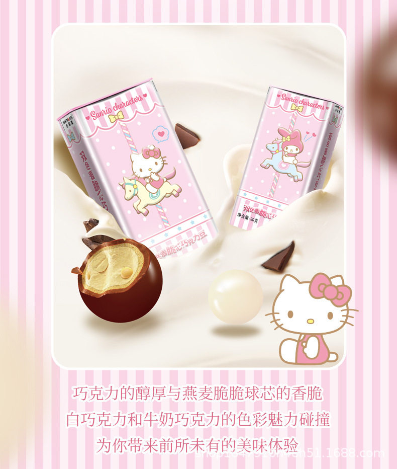 Xincai Zi Sanrio Co-Branded Two-Color Wheat Crisp Core Chocolate Pure Cocoa Butter Tin Chocolate Bean Snacks Genuine
